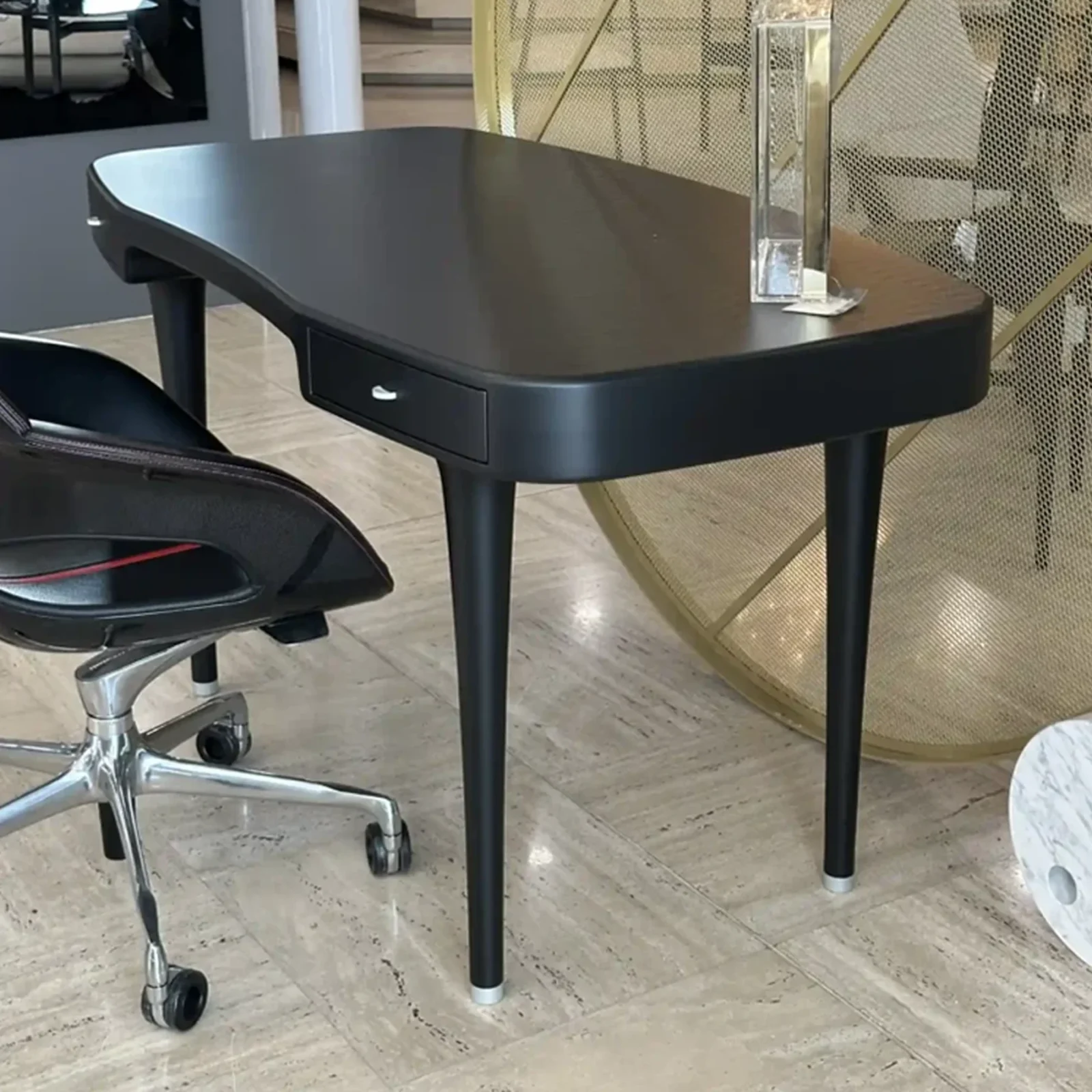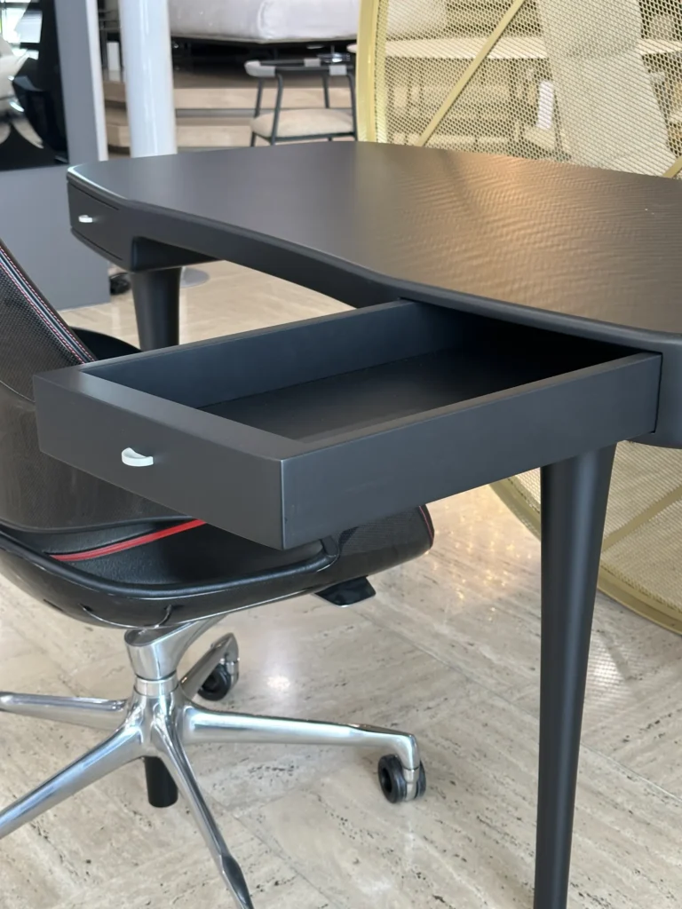 Riga, progettato dal celebre designer Marc Newson, รจ uno scrittoio dalle linee pulite e moderne, pensato per offrire eleganza e funzionalitร . Con una struttura realizzata in legno laccato opaco, questo scrittoio si inserisce perfettamente in qualsiasi ambiente contemporaneo.
