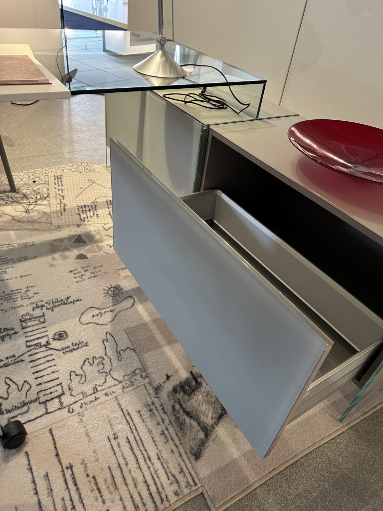 Air Desk รจ arricchita da un contenitore laterale "Dattilo" con un cassettone e un contenitore con due ante in vetro... Leggi di piรน