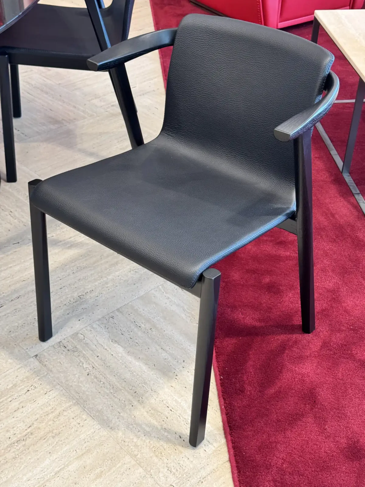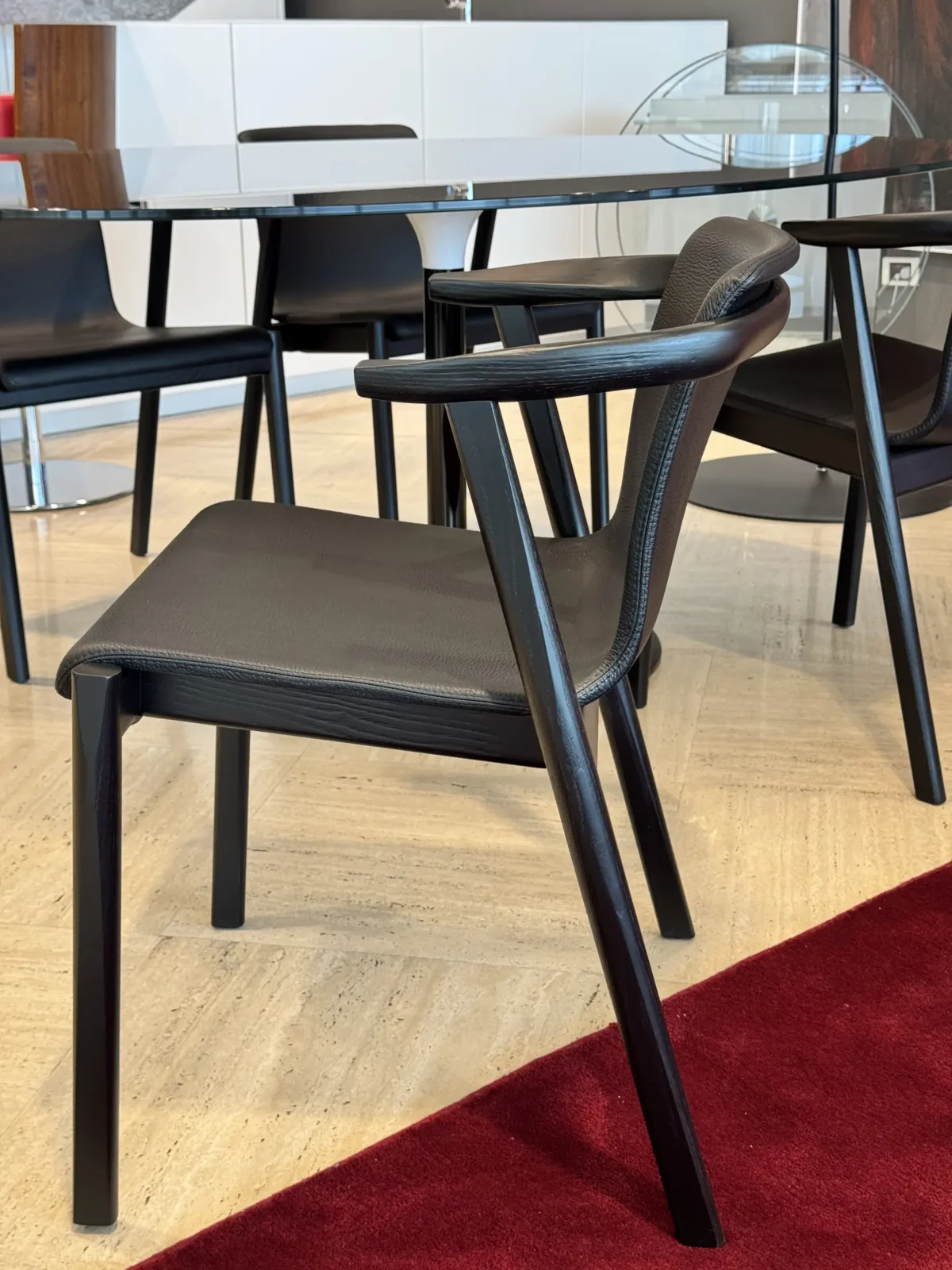 - Materiali: La struttura della sedia รจ realizzata in frassino laccato nero a poro aperto, che conferisce robustezza e un aspetto elegante.