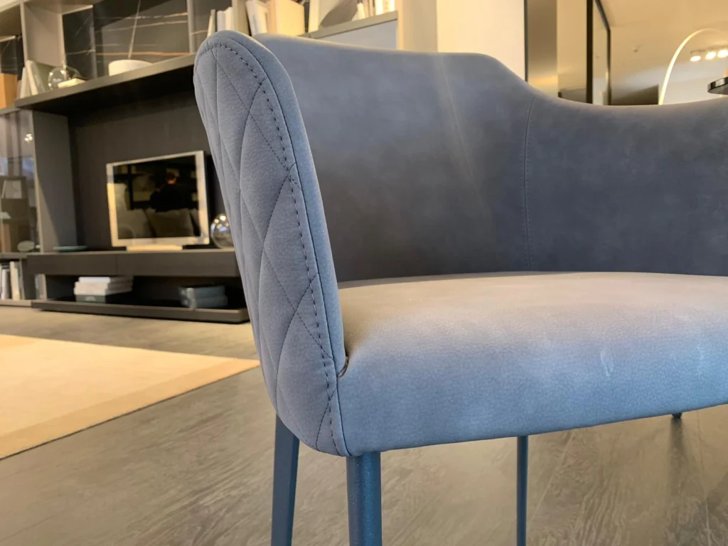 La sedia Carmen, disegnata da Stefano Sandonร  e Sabrina Bettini per Riflessi, รจ una soluzione elegante e confortevole per arredare la zona living o dining. Dotata di braccioli e gambe in acciaio verniciato color grafite, presenta un design contemporaneo. Il rivestimento esterno รจ in trapunta Sahara categoria B, mentre lโ€™interno รจ in eco-nabuk Sahara categoria B, per un risultato sofisticato e accogliente. Ideale per ambienti moderni, unisce qualitร  artigianale e cura nei dettagli.