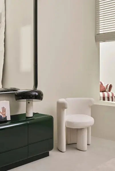 Il design si distingue per lo schienale robusto e avvolgente, abbinato a una particolare base con una sola gamba anteriore, dalle linee generose e architettoniche. Una scelta progettuale che conferisce alla sedia Claudine un equilibrio unico tra soliditร visiva ed eleganza formale.