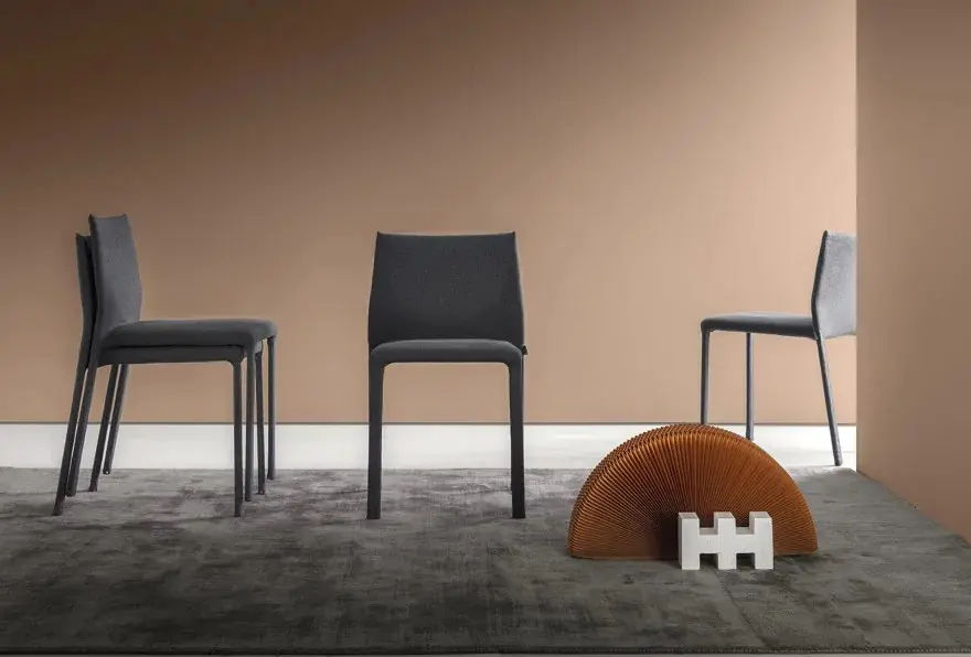 La sedia è studiata per garantire praticità e versatilità. Il rivestimento sfoderabile consente una facile manutenzione e assicura una maggiore durata nel tempo. Di conseguenza, questa soluzione risulta adatta sia a contesti residenziali sia ad ambienti contract.