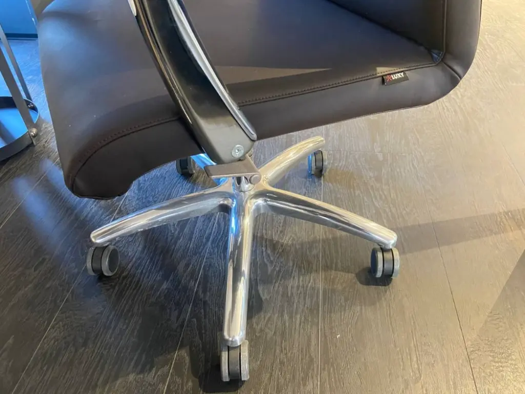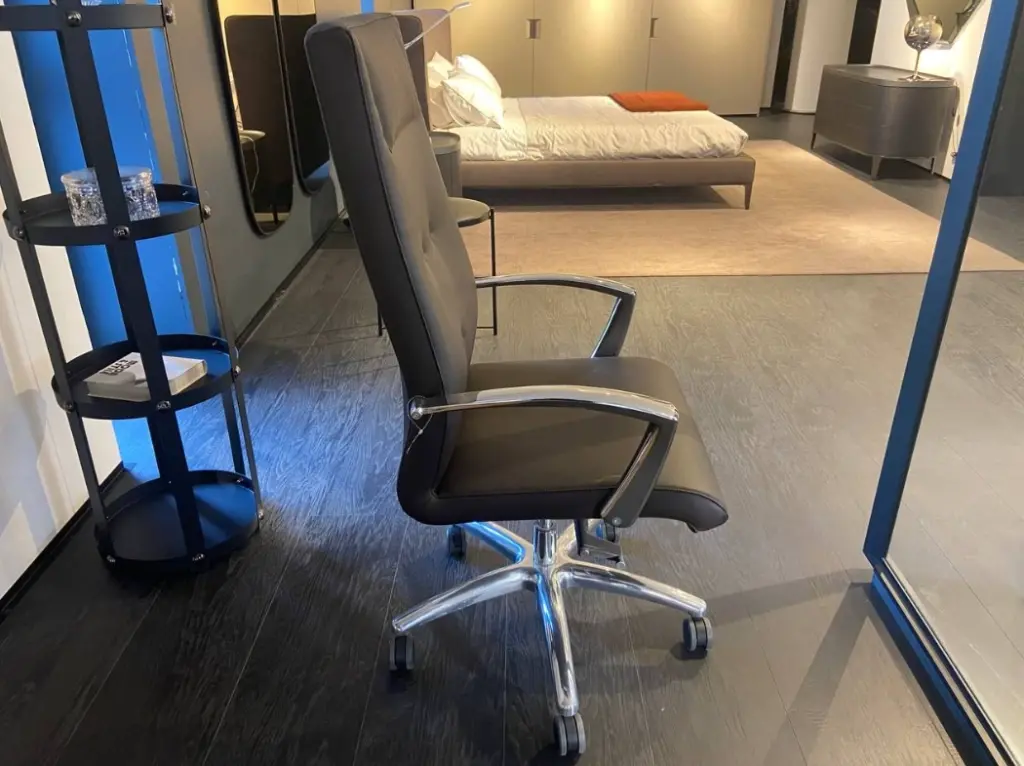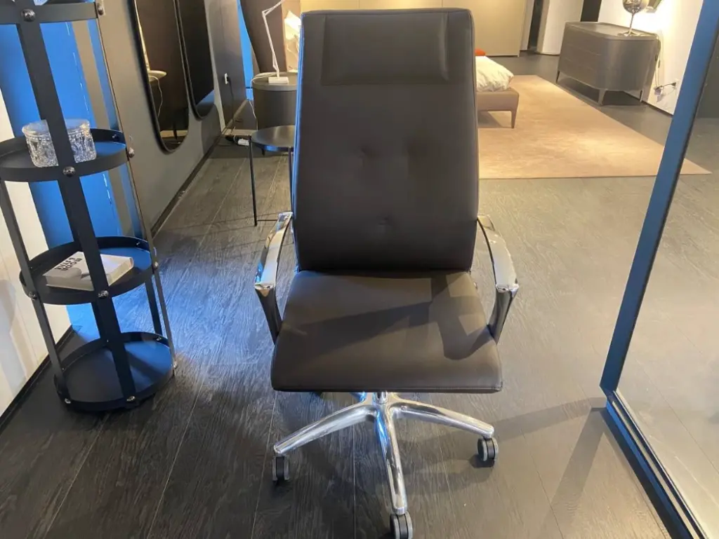 La sedia da ufficio One di Luxy รจ perfetta per chi desidera un ambiente di lavoro elegante e confortevole. Grazie alla sua struttura in alluminio, questa sedia garantisce robustezza e durata nel tempo, mentre la seduta e lo schienale in pelle color testa di moro/brown aggiungono un tocco di classe e raffinatezza, rendendola ideale per qualsiasi contesto lavorativo.
