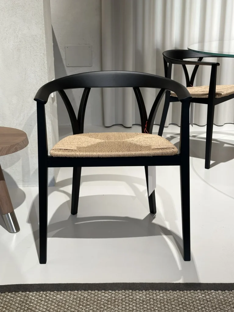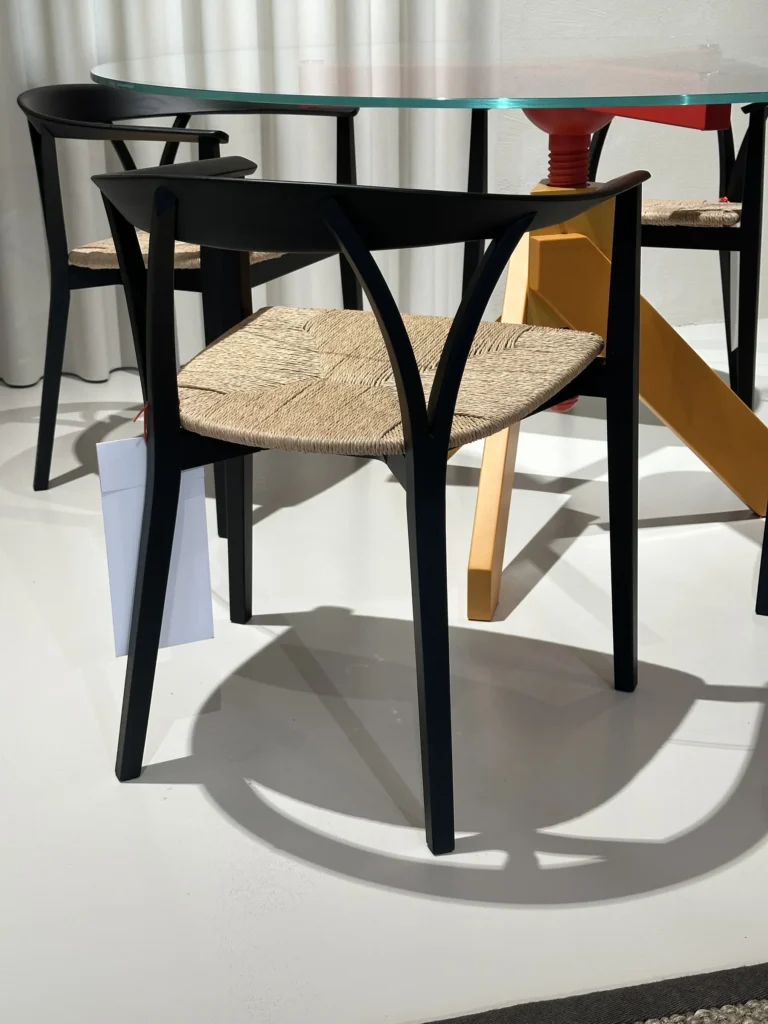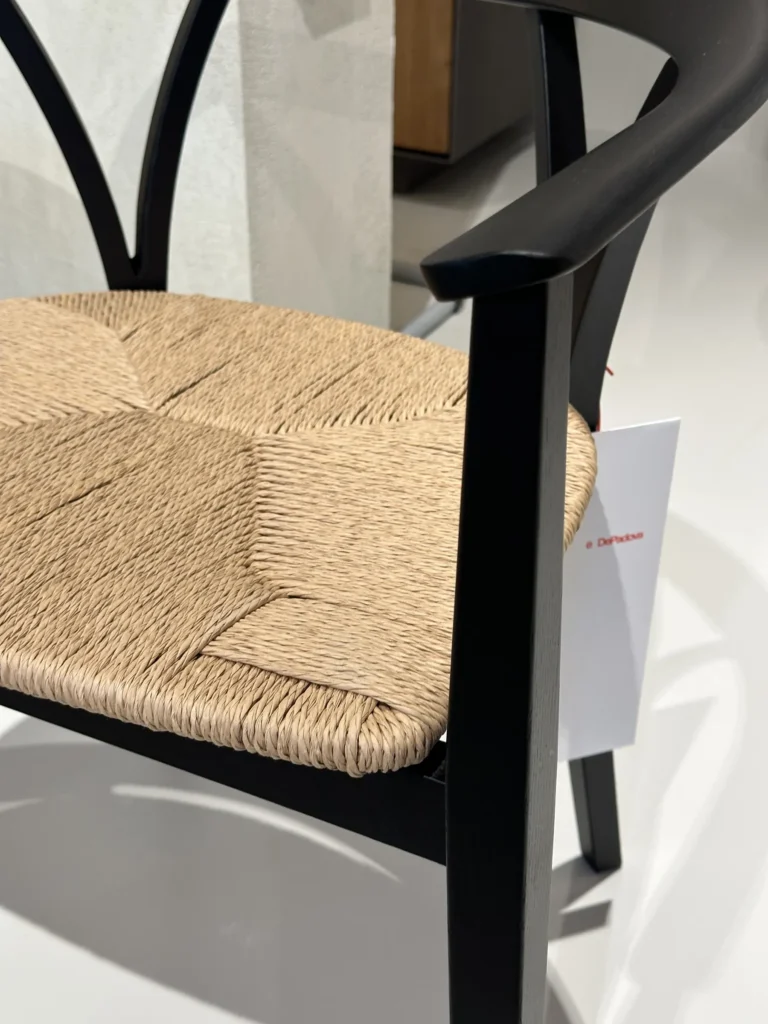 - Struttura: La sedia รจ realizzata con una struttura in frassino tinto nero, che le conferisce un aspetto contemporaneo pur mantenendo un legame con la tradizione.