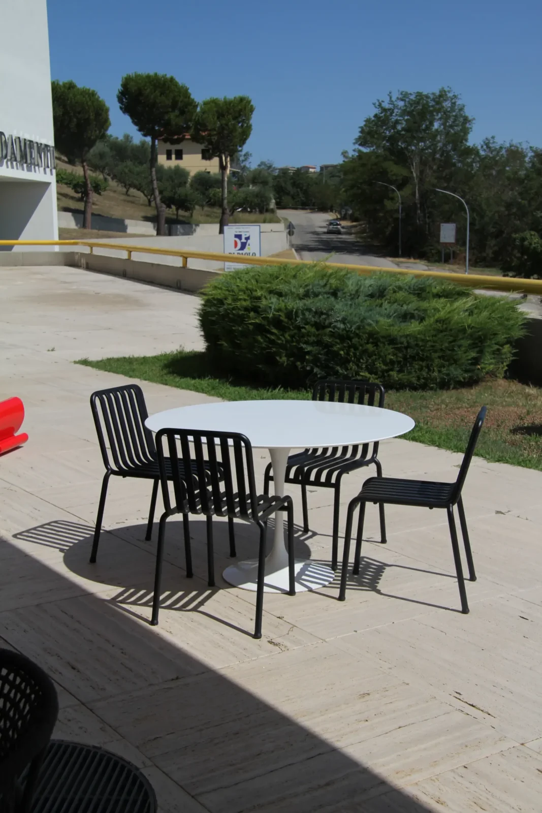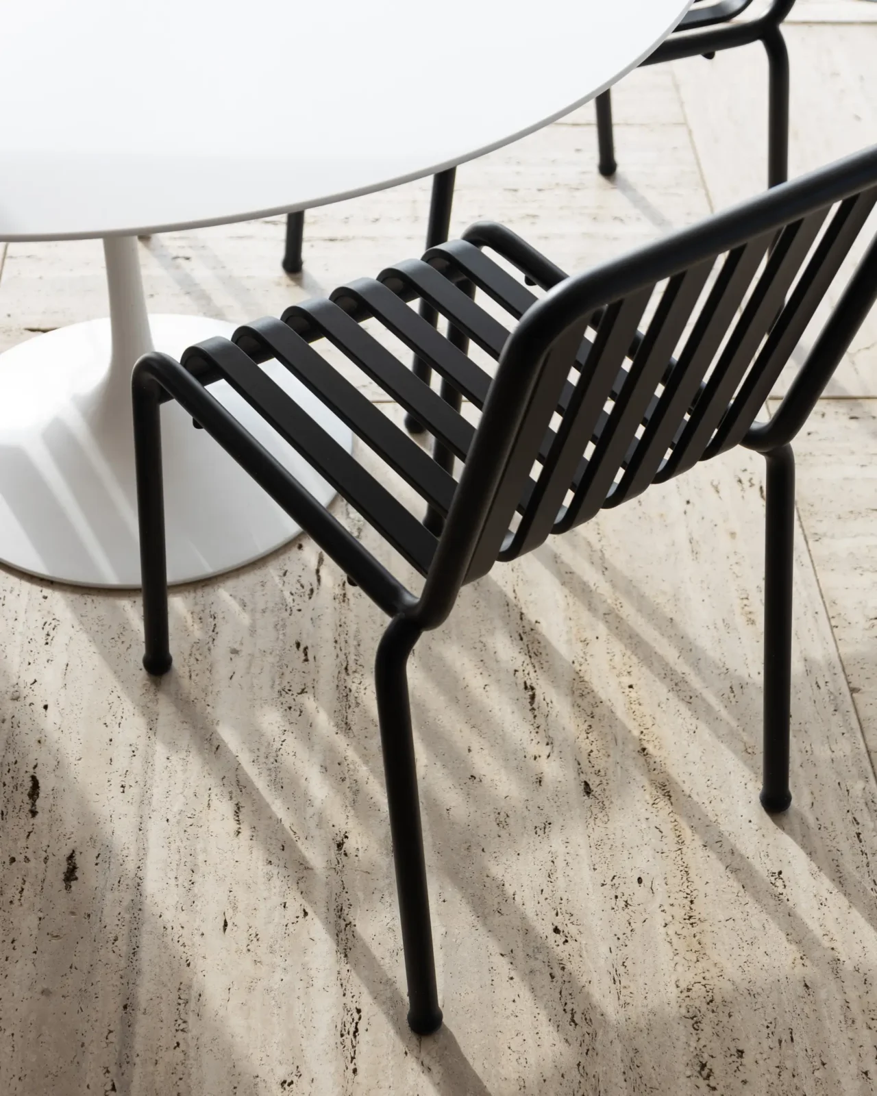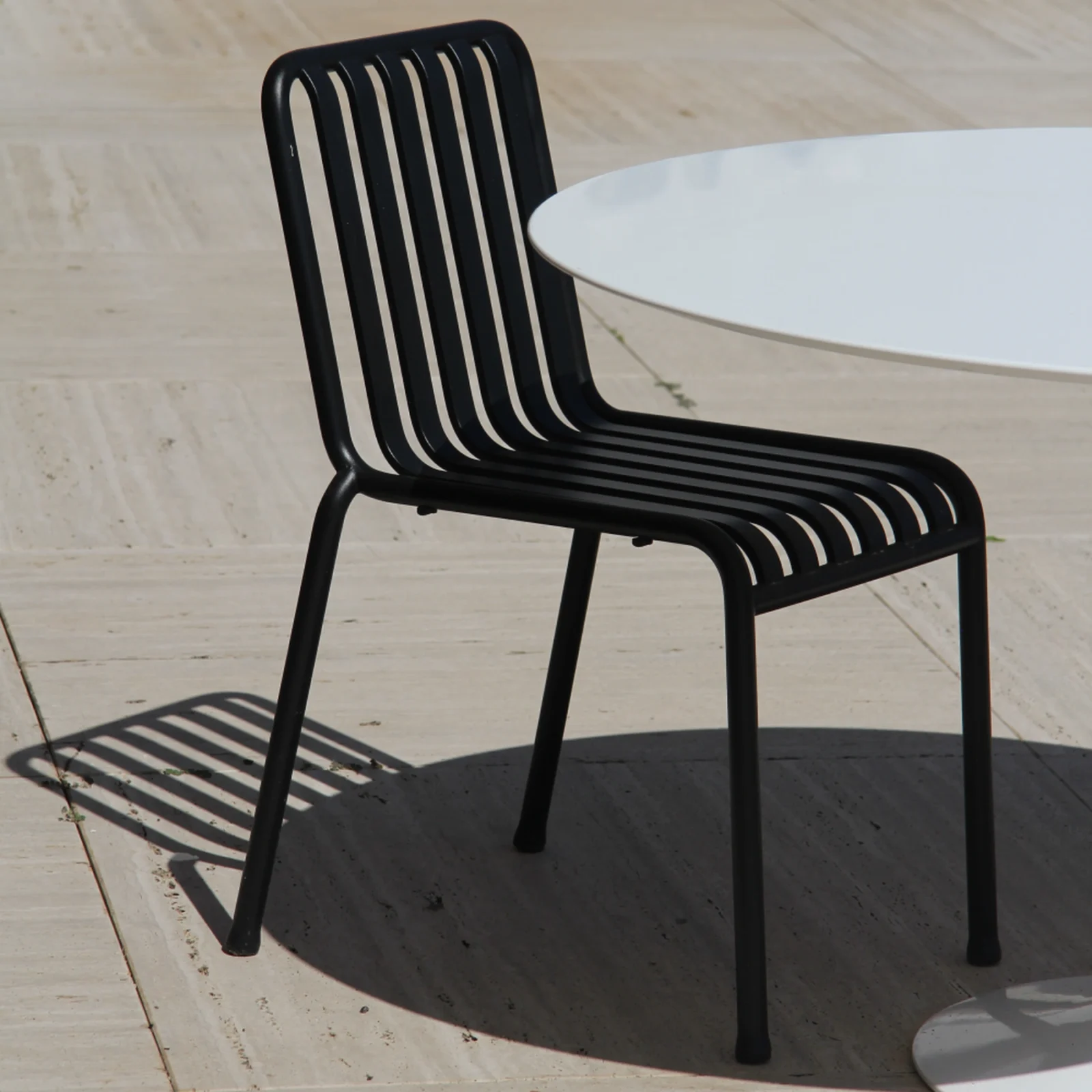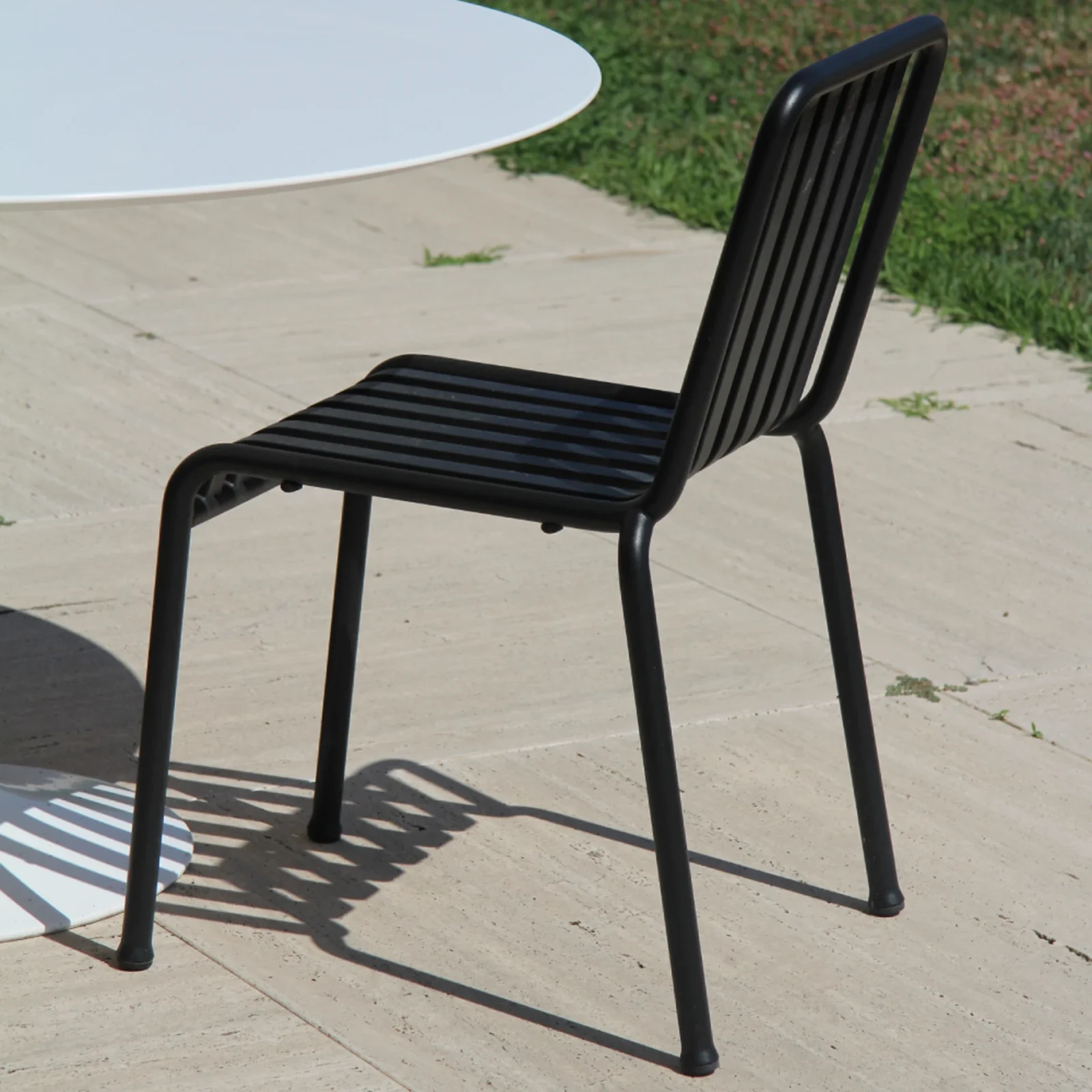 - Design: La sedia Palissade presenta un design grafico forte, composto da semplici tubi e assi in acciaio, che creano una struttura leggera ma solida. Il suo stile minimalista e l'aspetto lineare la rendono ideale per ambienti moderni, ma facilmente integrabile anche in contesti piรน tradizionali.