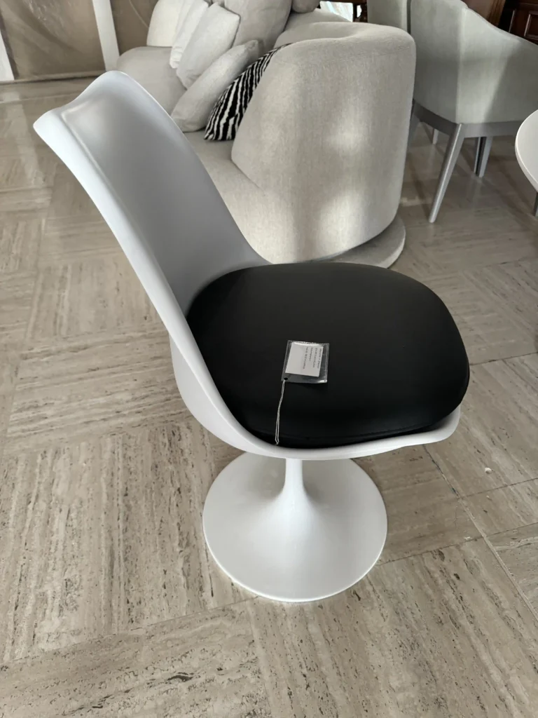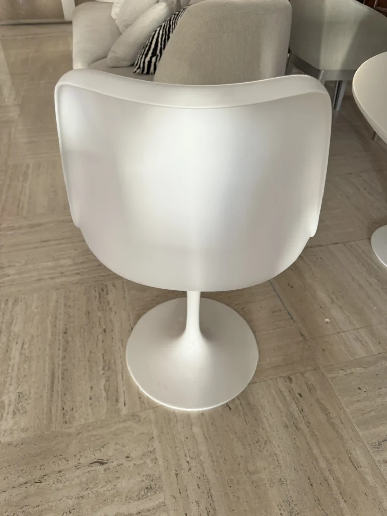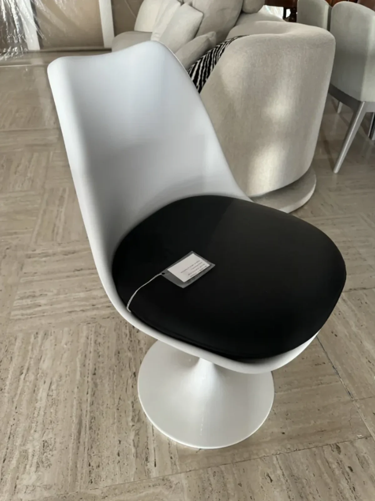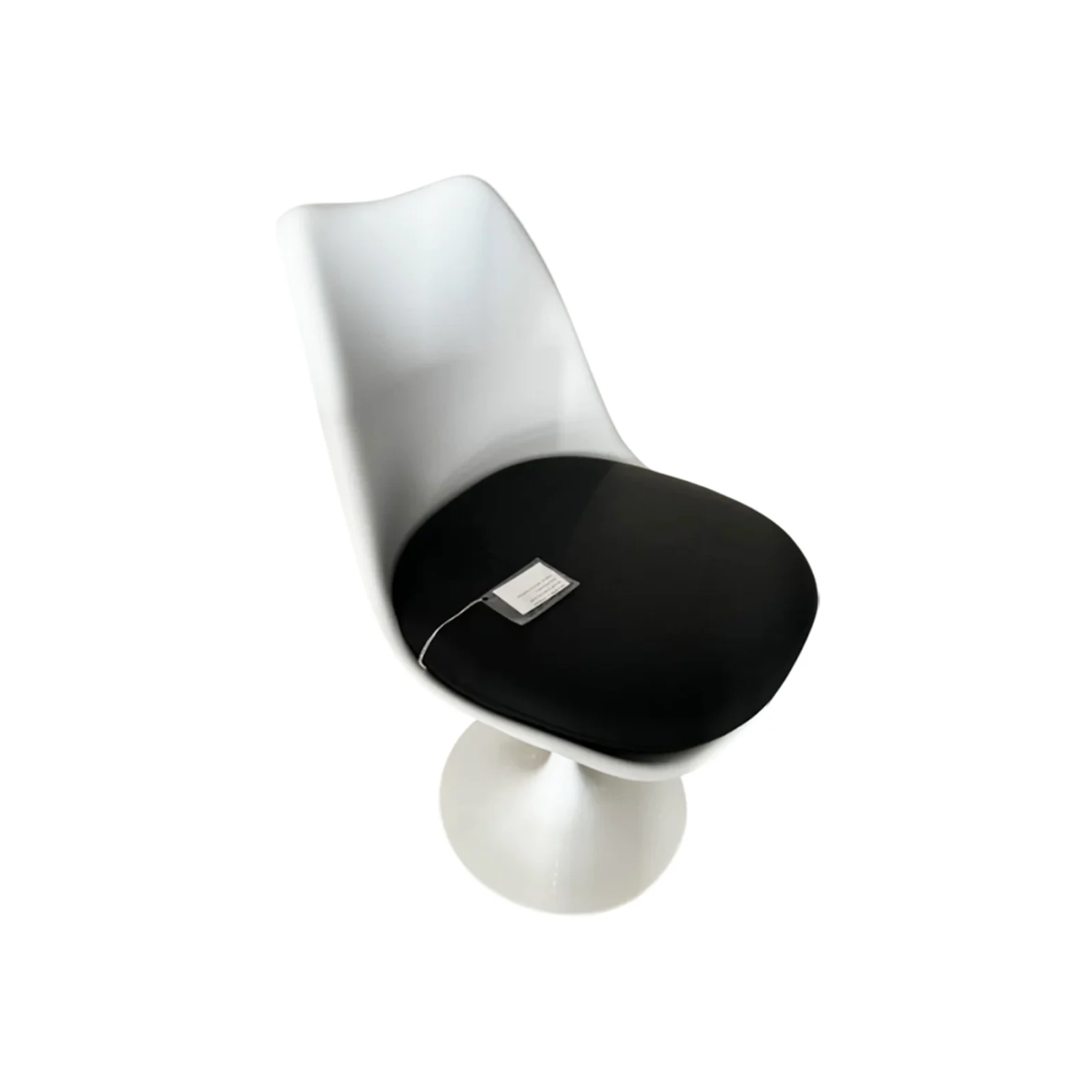 La Tulip 769 Gir Laccata Lucida Biancoย รจ una seduta di design contemporaneo che unisce eleganza e funzionalitร . La struttura ergonomica avvolge il corpo, offrendo un supporto confortevole e ideale per lunghe sedute. La base centrale in metallo laccato bianco lucido si allarga verso il pavimento, assicurando stabilitร e riducendo l'ingombro visivo delle quattro gambe tradizionali. La sedia, con la sua silhouette fluida e organica, si distingue per uno stile minimalista e arioso, adattandosi perfettamente a contesti sia domestici che professionali.