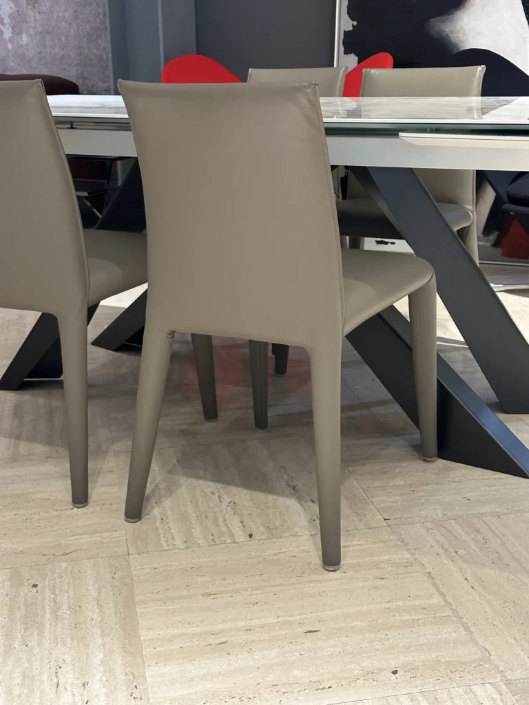 - Design: La sedia รจ disponibile con rivestimento in pelle (modello in pelle GM256 Grigio), con una linea scattante e leggera che la rende ideale per qualsiasi tipo di ambiente.
