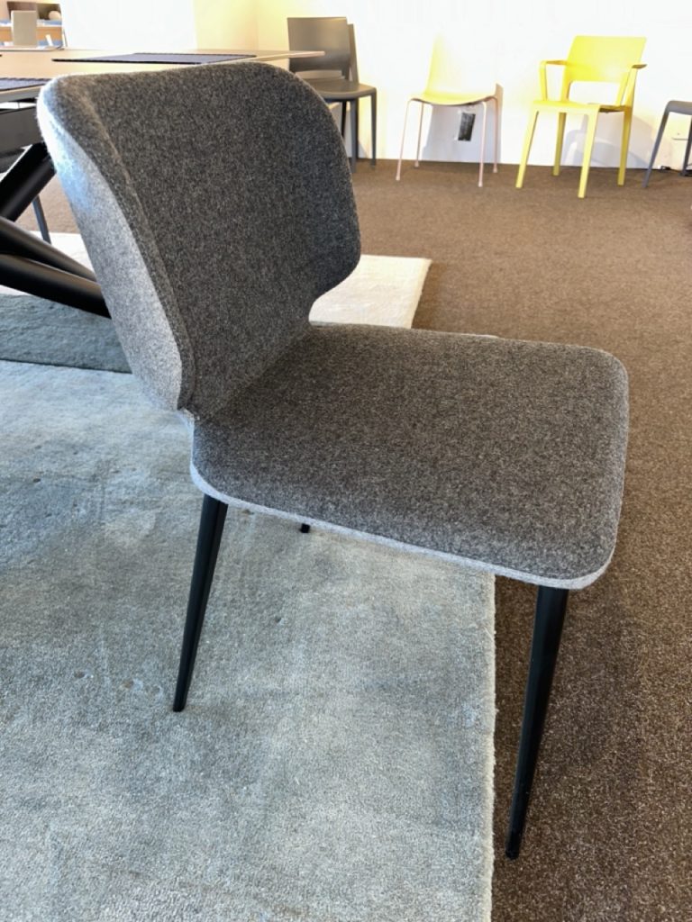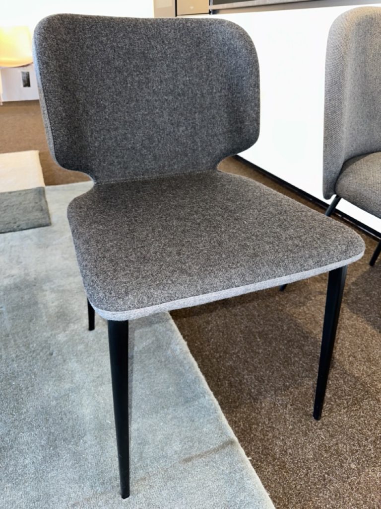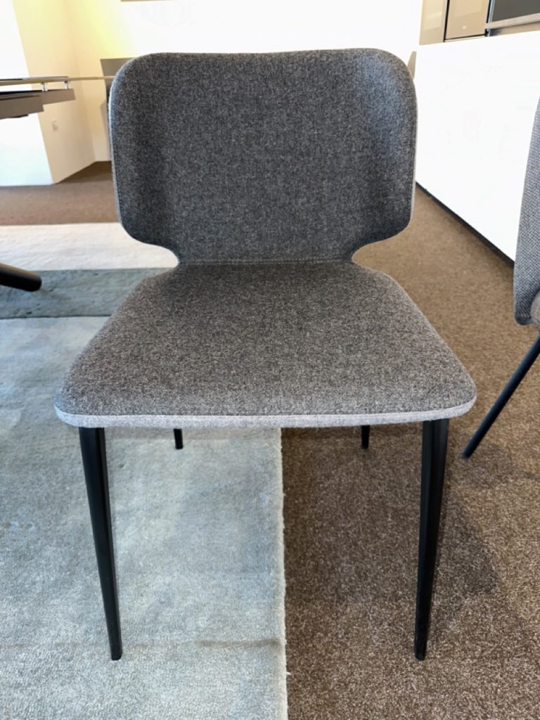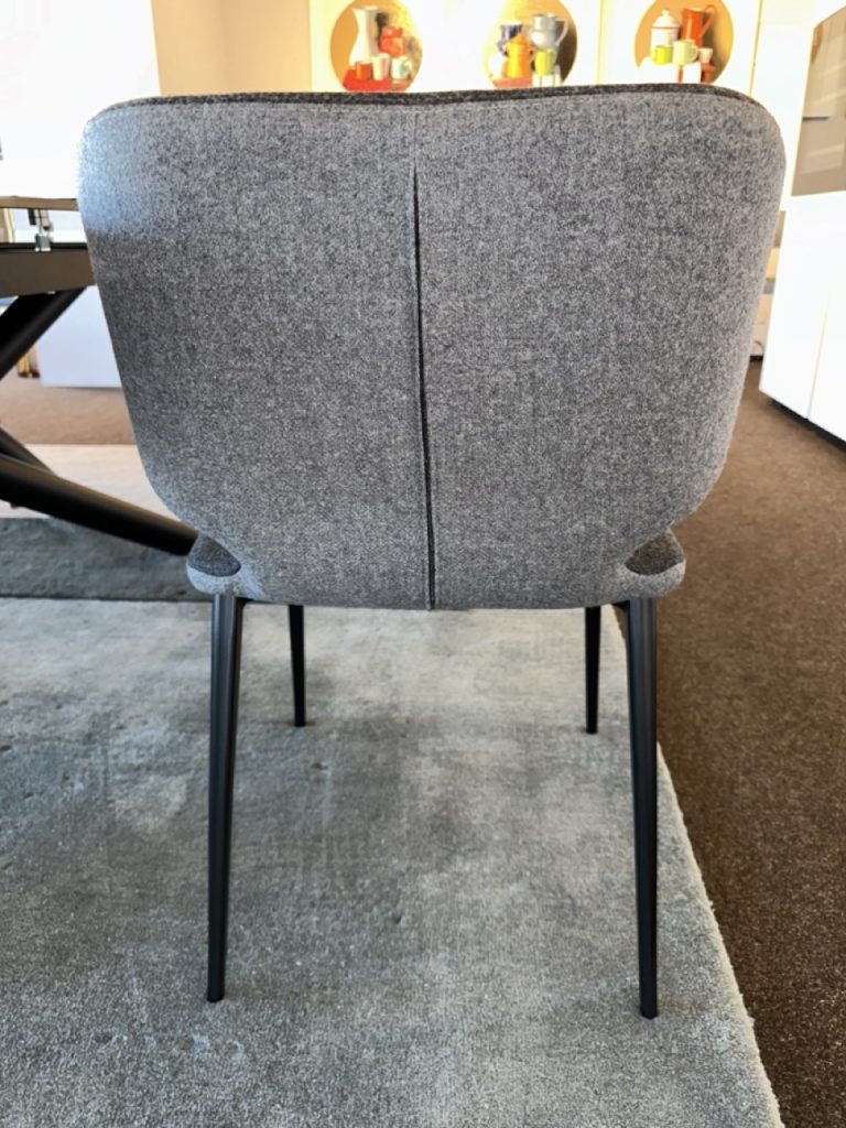La sedia Wrap S M TS รจ una scelta ideale per arredare con eleganza e funzionalitร  il tuo soggiorno o la tua sala da pranzo. Con una base a quattro gambe in metallo verniciato e una scocca imbottita in tessuto grigio, questa sedia unisce comfort e design contemporaneo.