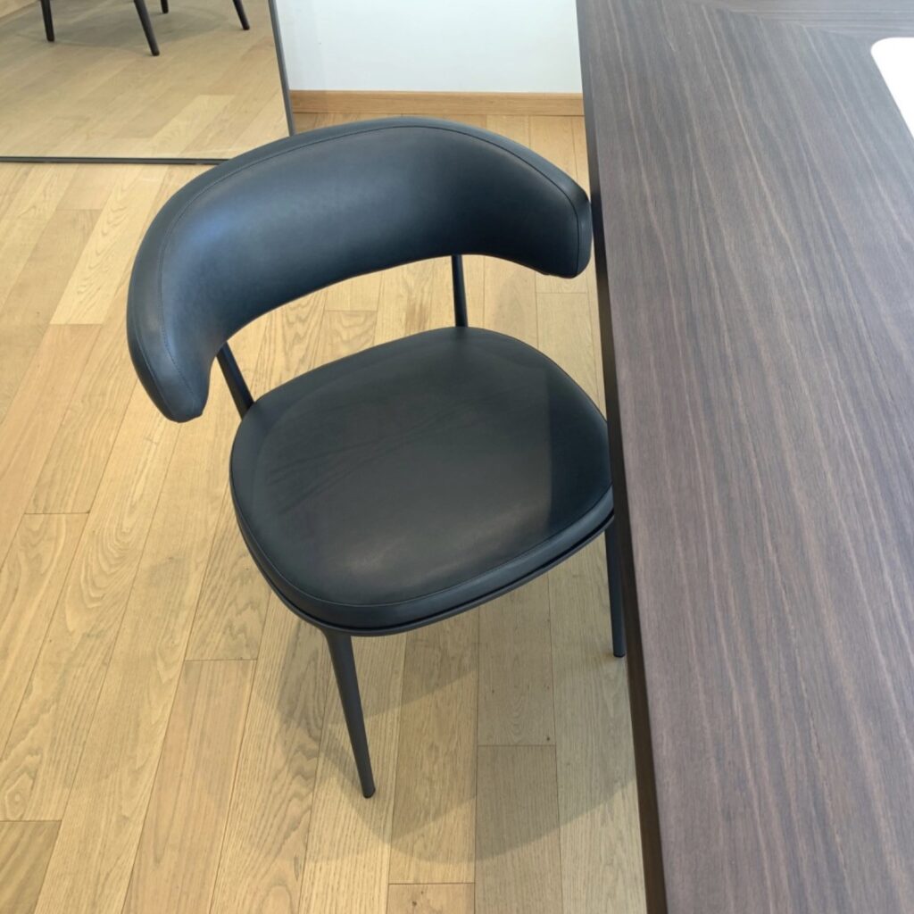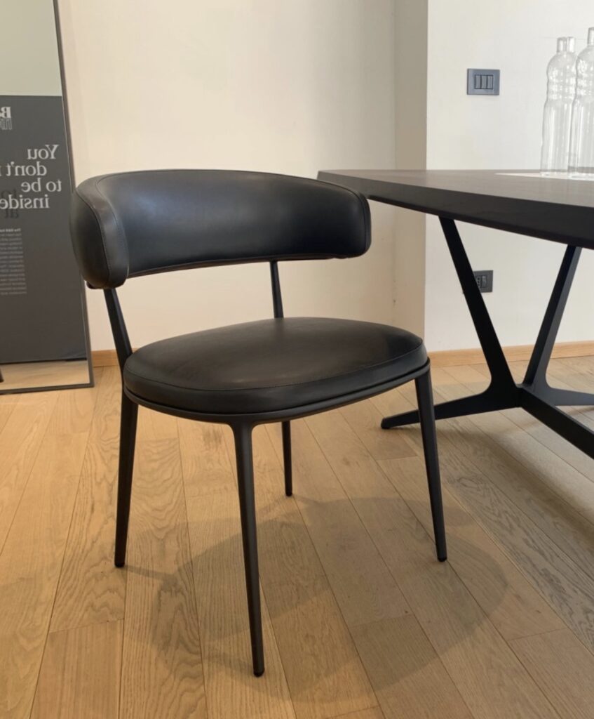 La versione proposta delle sedie Caratos si caratterizza per lo schienale avvolgente ed imbottito che integra anche i braccioli, creando una seduta confortevole e accogliente. Il rivestimento in pelle Kasia non solo offre un'estetica preziosa, ma garantisce anche una piacevole esperienza tattile. La struttura in alluminio verniciata color grafite conferisce un look moderno e una soliditร indeterminata.