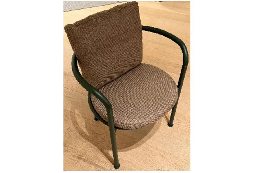 La versione proposta presenta una struttura in alluminio verniciato Verde Bottiglia, resistente alle intemperie e adatta all’uso esterno. I cuscini in tessuto Range 3 Mojito Bronzo, invece, aggiungono calore cromatico e un contrasto materico elegante. Questa combinazione rende la seduta equilibrata e versatile.