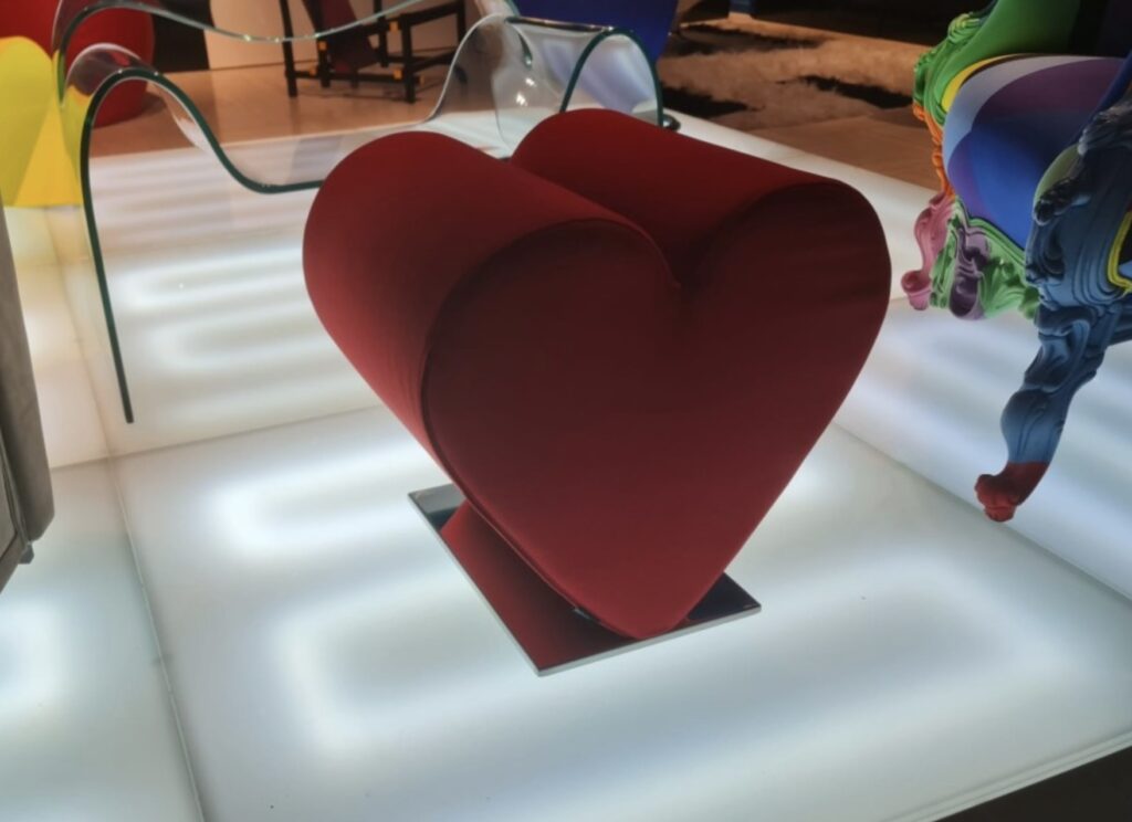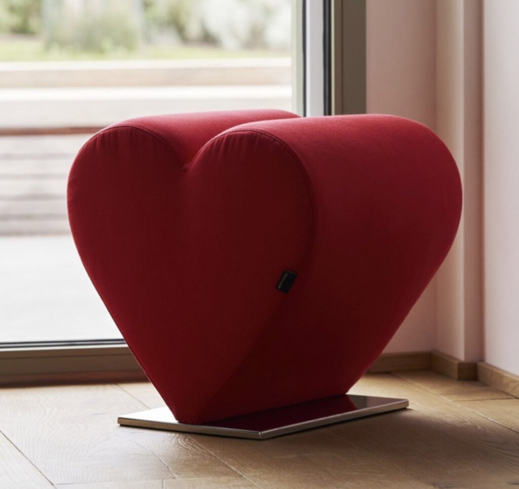La Love/B a forma di cuore presenta una struttura in acciaio inox lucido, che conferisce modernitร al design complessivo. Il rivestimento in poliuretano rivestito in tessuto Trevira 19 rosso aggiunge un tocco vivace, la geometria della base rettangolare garantisce una maggiore stabilitร , permettendo di utilizzarla in vari contesti, dal salotto alla sala da pranzo, dall'ufficio agli spazi commerciali.