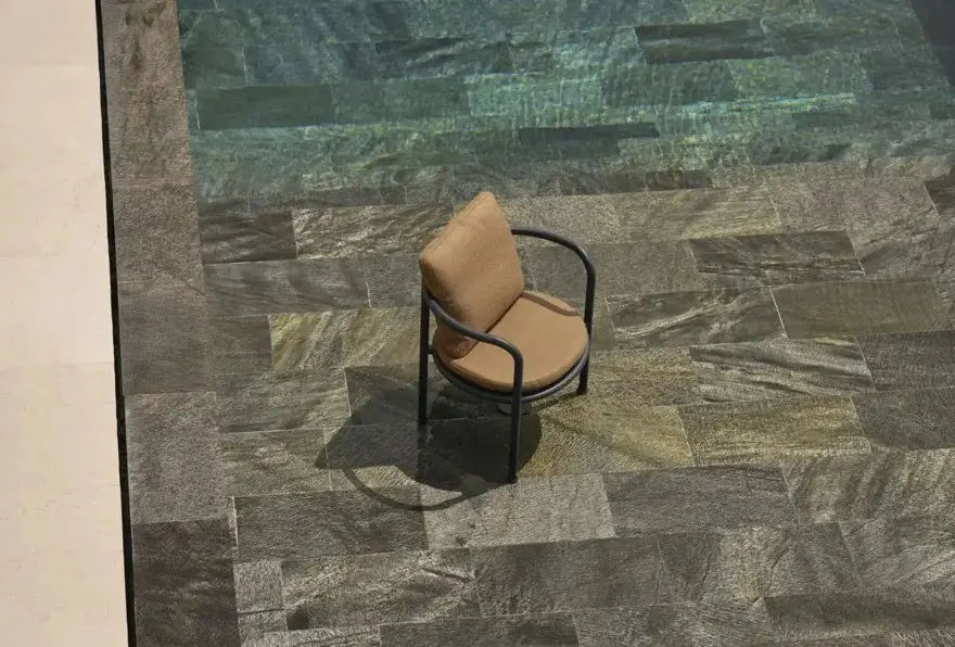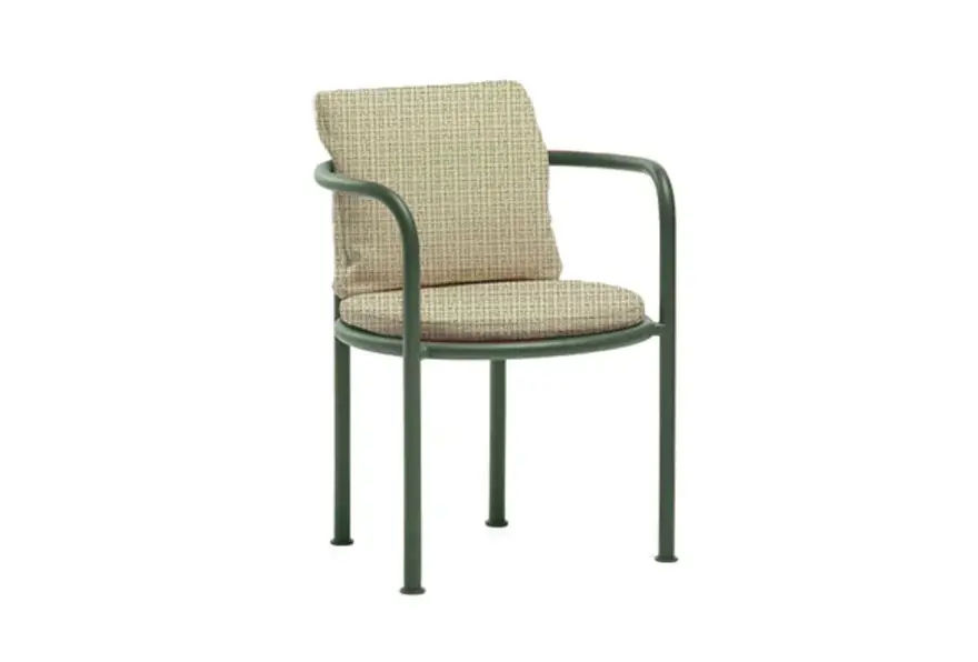 La versione proposta presenta una struttura in alluminio verniciato Verde Bottiglia, abbinata a cuscini in tessuto Range 3 Reviva Iris Corda, una finitura elegante e sofisticata, perfetta per ambienti outdoor curati e spazi contract di alto livello. I cuscini sono rimovibili e sfoderabili, assicurando praticità d’uso e facilità di manutenzione.