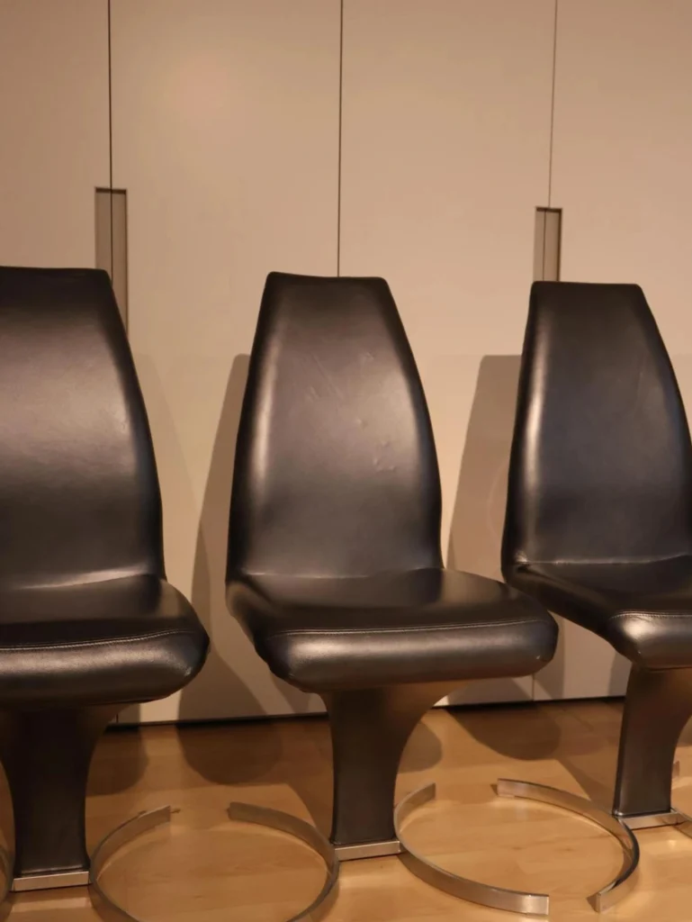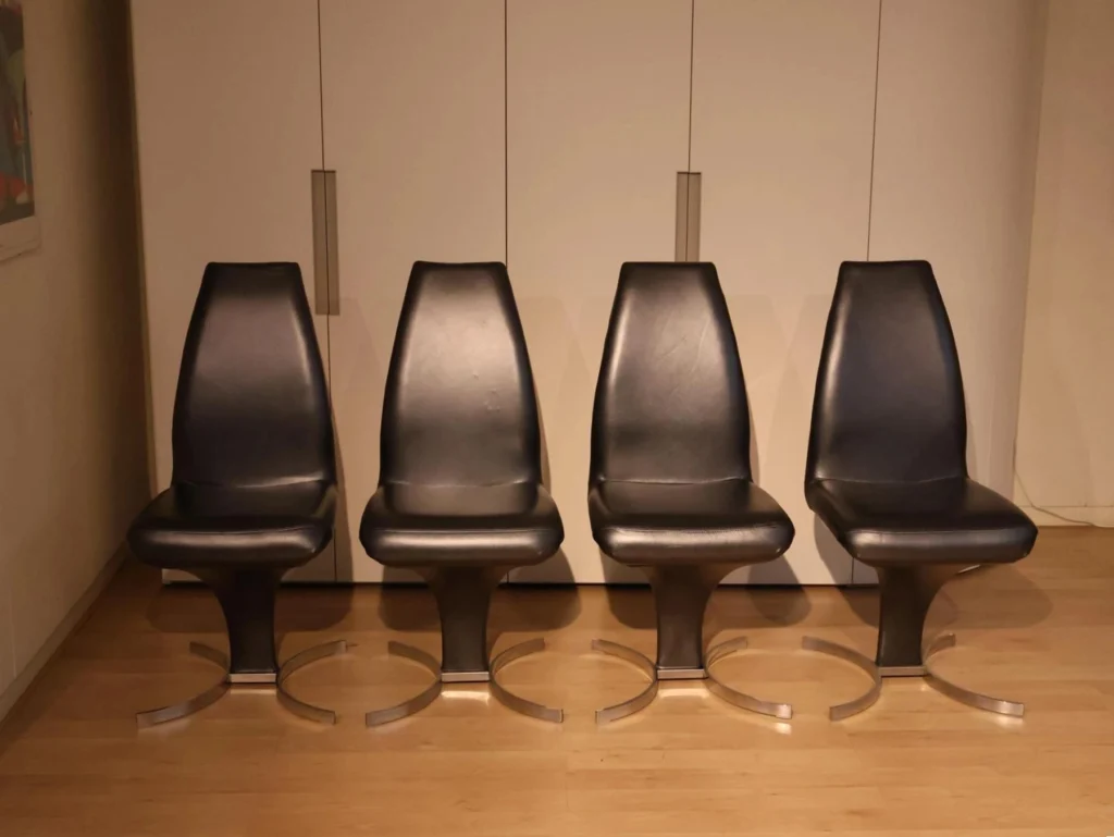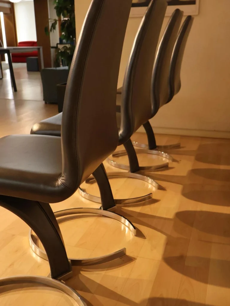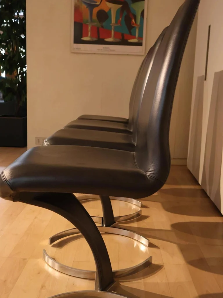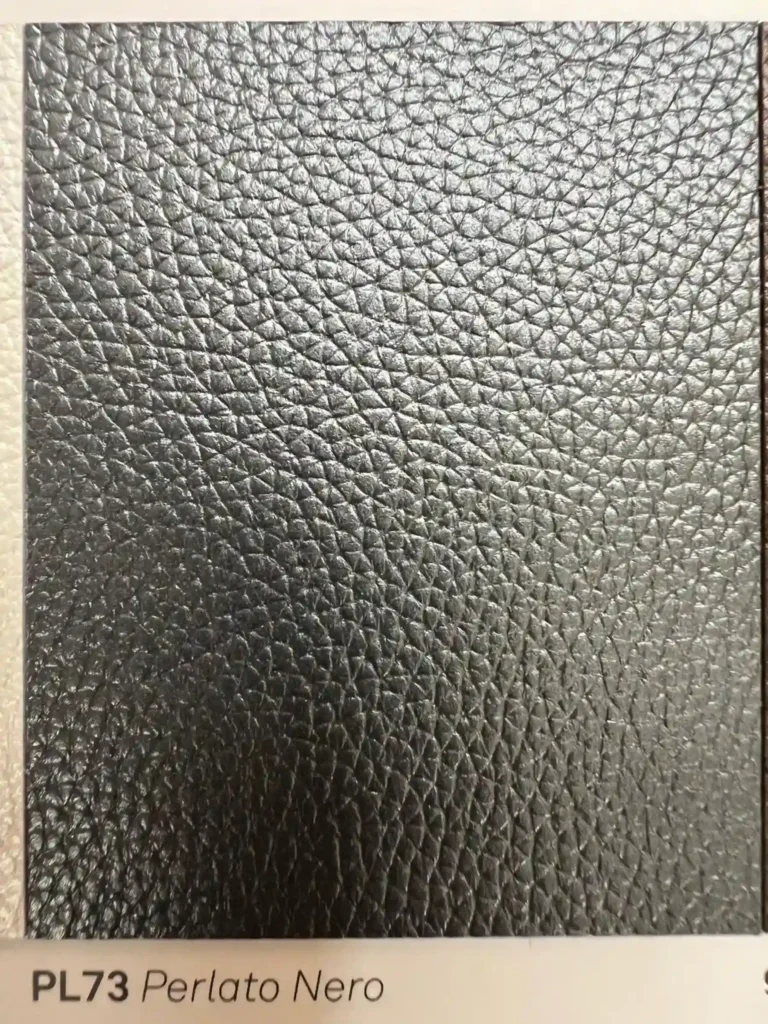 - Rivestimento in pelle nera perlata PL73: La pelle nera perlata conferisce alla sedia un aspetto minimalista, resistente e durevole nel tempo.