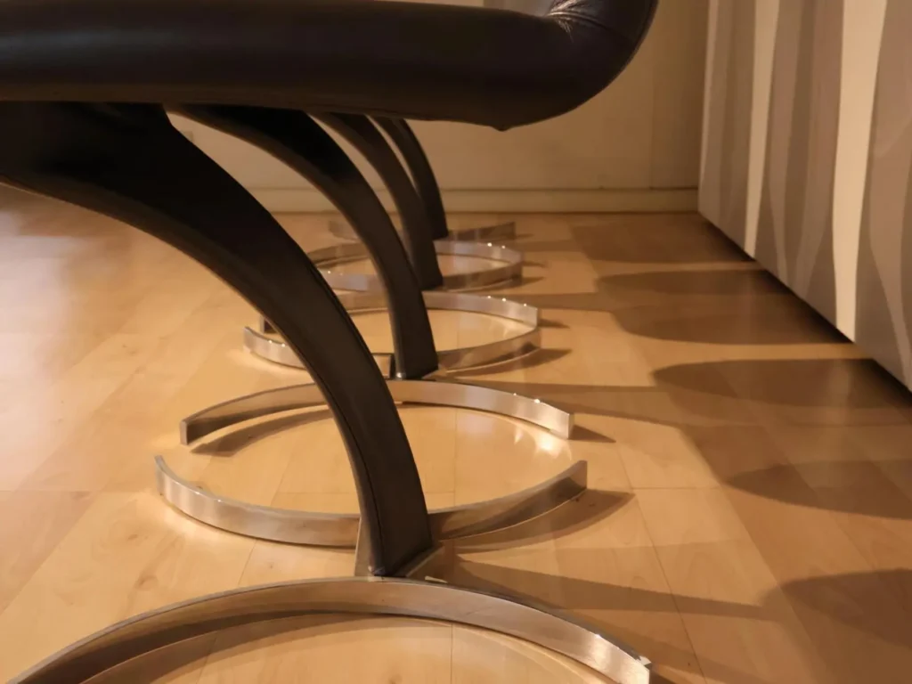 - Piede 08 cromato: La base in acciaio verniciato cromatoย offre stabilitร e un aspetto contemporaneo che si adatta perfettamente a vari tipi di arredamento.