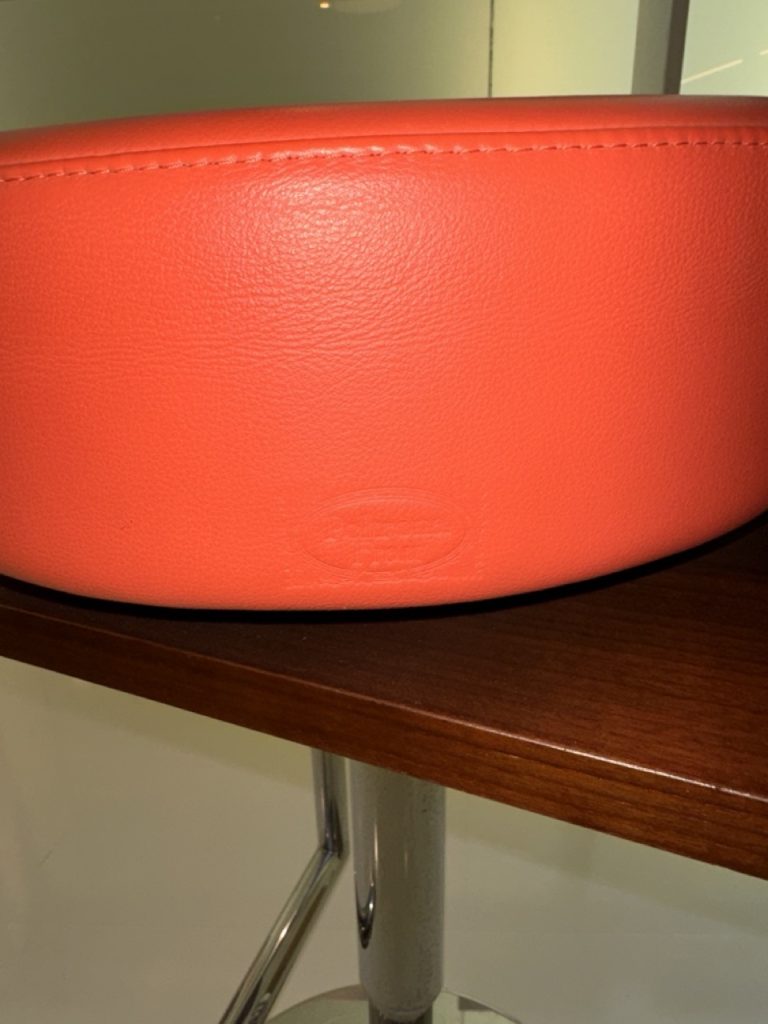 - Rivestimento in pelle: Gli sgabelli sono rivestiti in pelle di alta qualitร , una scelta che conferisce un aspetto lussuoso e al contempo garantisce resistenza e comfort.