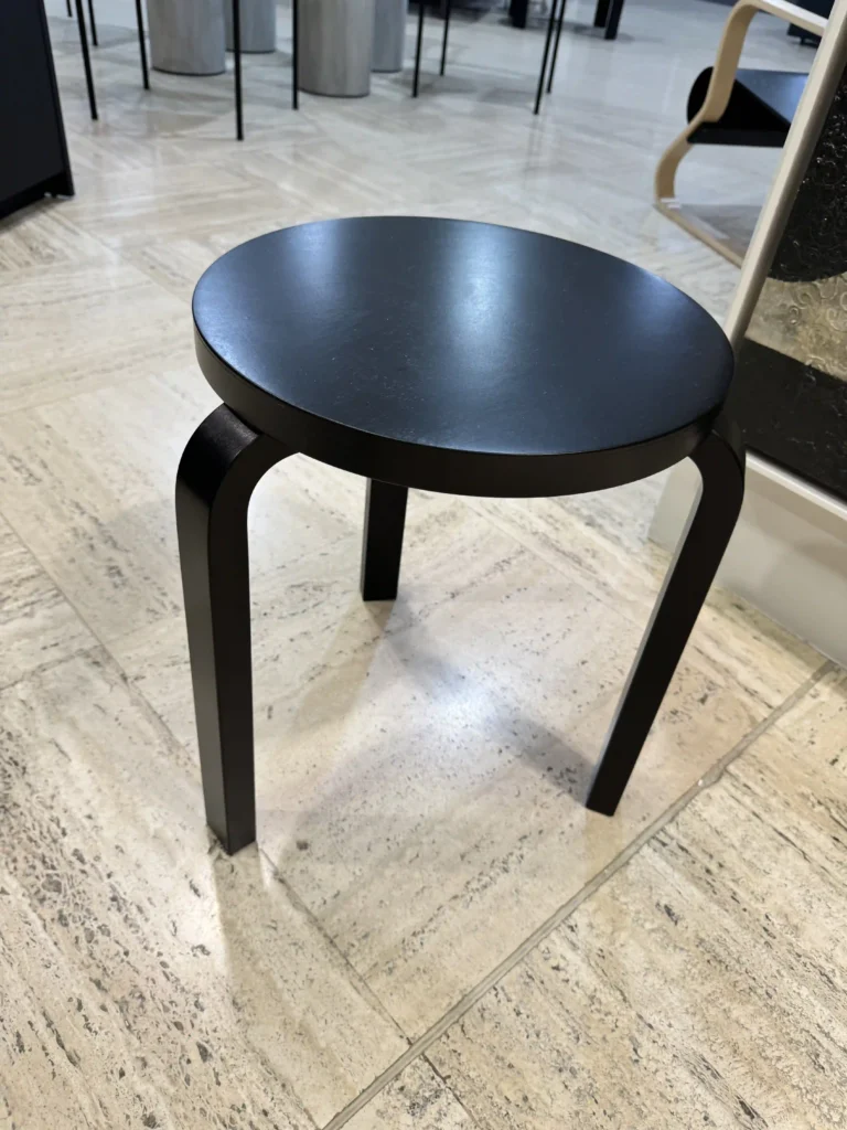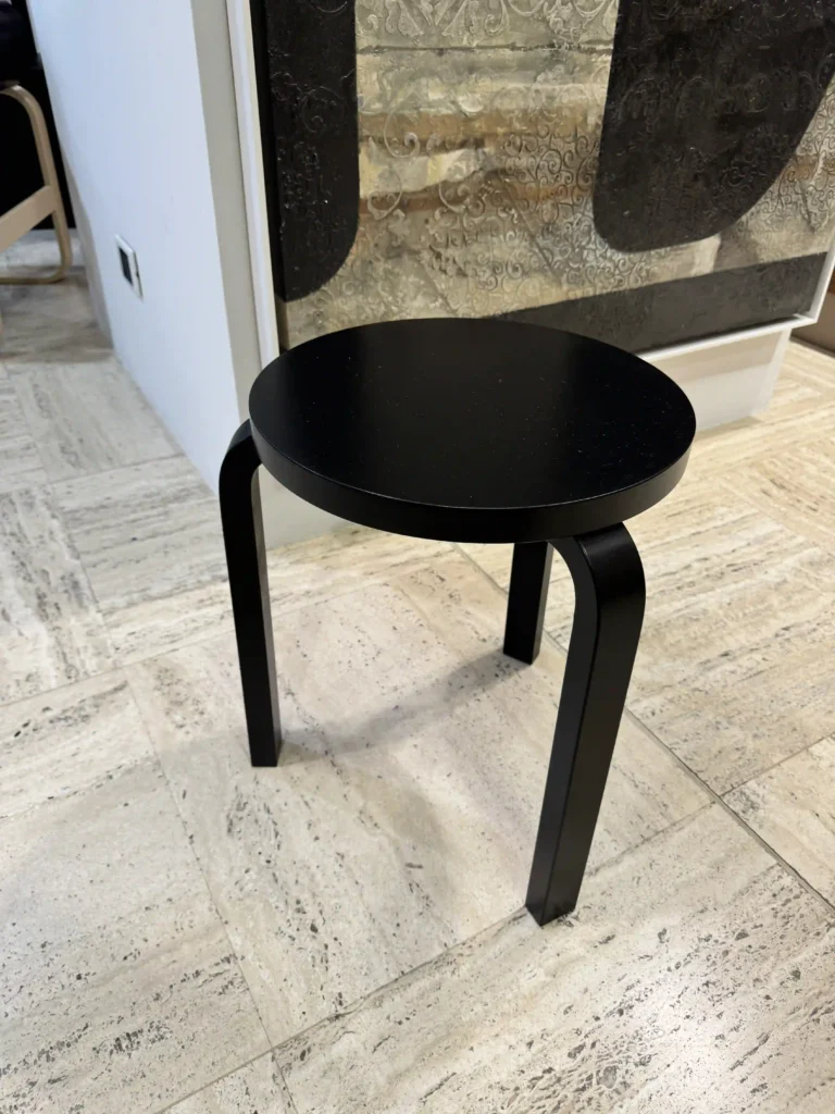 Lo sgabello 60, progettato dal celebre Alvar Aalto, รจ unโicona di funzionalitร e semplicitร nel design. Con una struttura in betulla laccata nera e un sedile rotondo dalle linee pulite, questo sgabello si presta a molteplici usi: puรฒ fungere da seduta, tavolino, contenitore o superficie espositiva, adattandosi perfettamente a qualsiasi ambiente. La sua caratteristica struttura permette di impilare gli sgabelli in una scultura a torre a spirale, creando un effetto estetico oltre che pratico per risparmiare spazio.