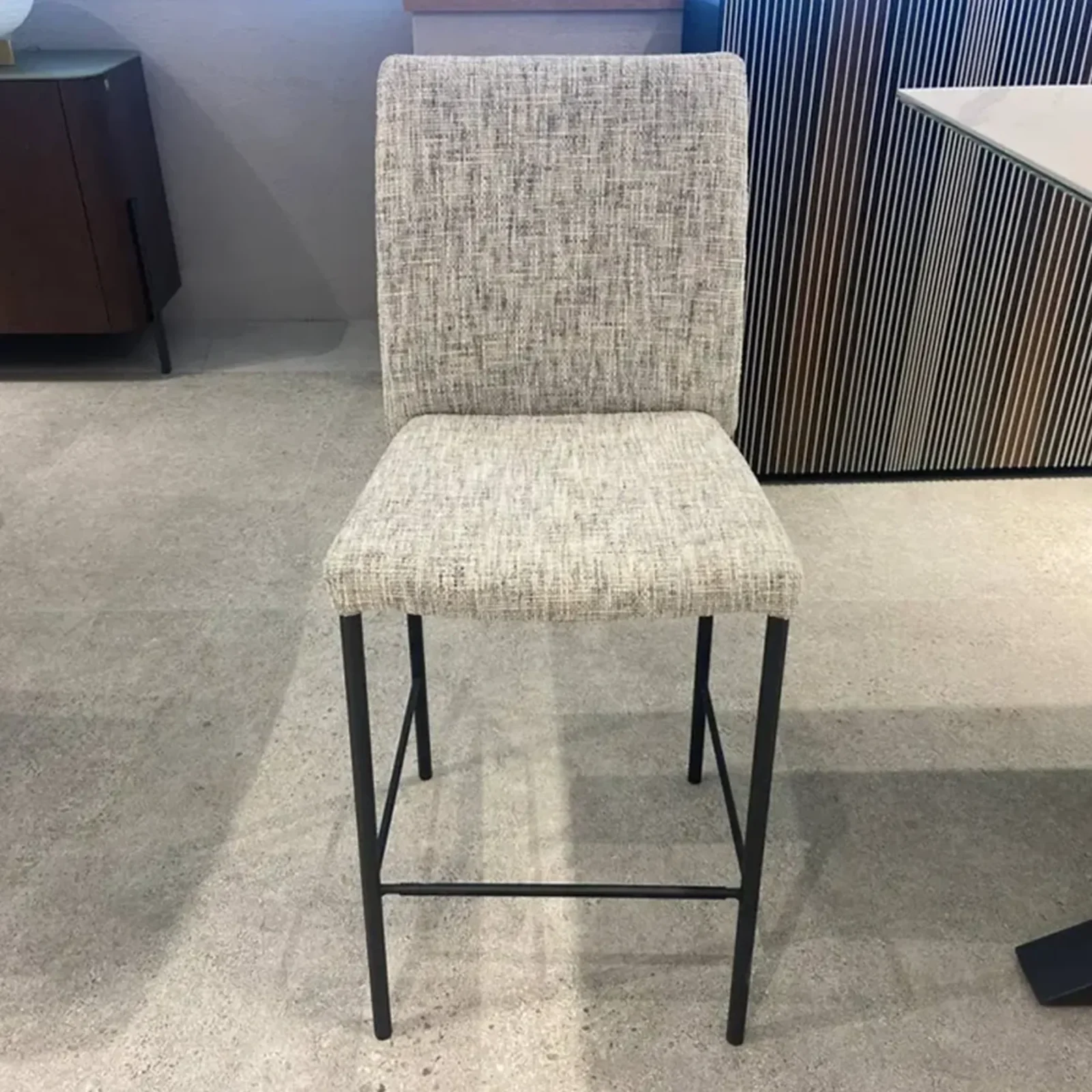 Gaiaย unisce eleganza e comfort, ideale per ambienti moderni. La struttura รจ realizzata in acciaio verniciato grafite, garantendo soliditร e stabilitร , mentre la seduta e lo schienale imbottiti offrono unโesperienza di seduta comoda e accogliente. Il rivestimento della seduta in tessuto Mire 1 (Categoria C) esalta lo stile contemporaneo dello sgabello, rendendolo adatto sia per ambienti domestici che professionali. Con unโaltezza seduta di 65 cm, Gaia si integra perfettamente in cucine con isola o in zone bar.