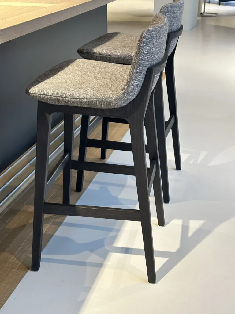 - Struttura: Realizzata in olmo nero, la struttura dello sgabello Ventura รจ solida e resistente, con una finitura che conferisce un aspetto elegante e contemporaneo.