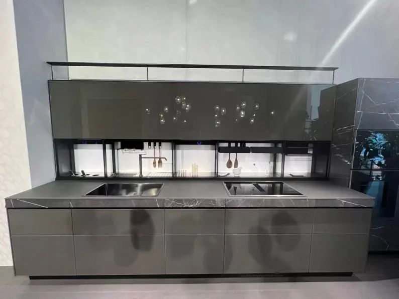 Completa la composizione lo zoccolo nero alto 10 cm, che rafforza il carattere architettonico dellโinsieme. La cucina Artematica รจ pensata per ambienti contemporanei di alto livello.