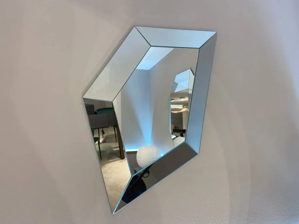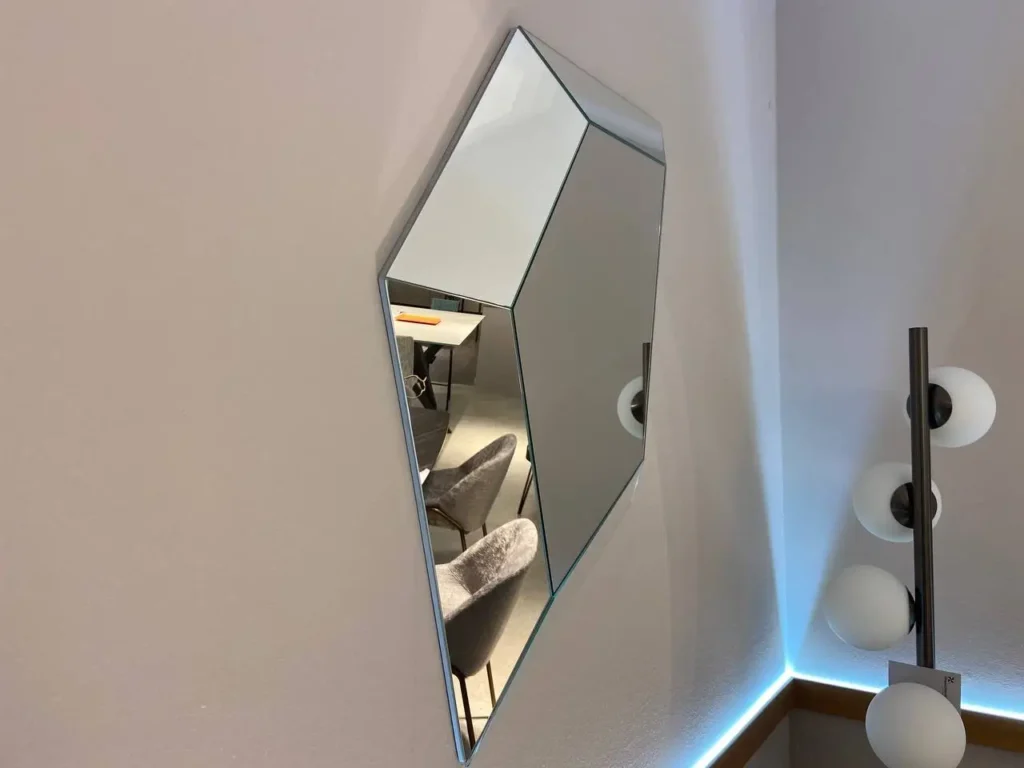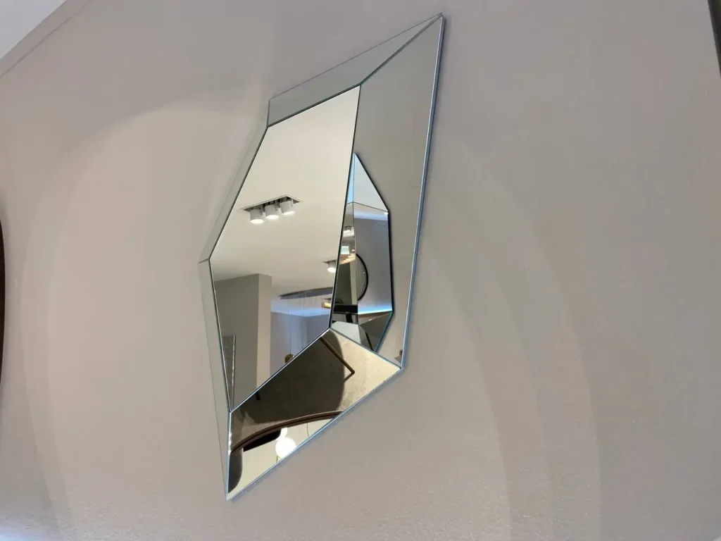 City Life, dalla finitura specchiante, รจ un elemento di grande impatto visivo, progettato per catturare l'attenzione. La sua forma unica, un pentagono irregolare, si distingue per la cornice a cinque lati inclinati che riflettono la luce da diverse angolazioni, creando un gioco di riflessi. Questo specchio dalla forte personalitร รจ ideale come protagonista in ambientazioni moderne dal design ricercato o in spazi dal gusto industriale, come loft recuperati. Contatta il nostro team di esperti via email aย info@primearredo.comย o chiamaci per maggiori informazioni!
