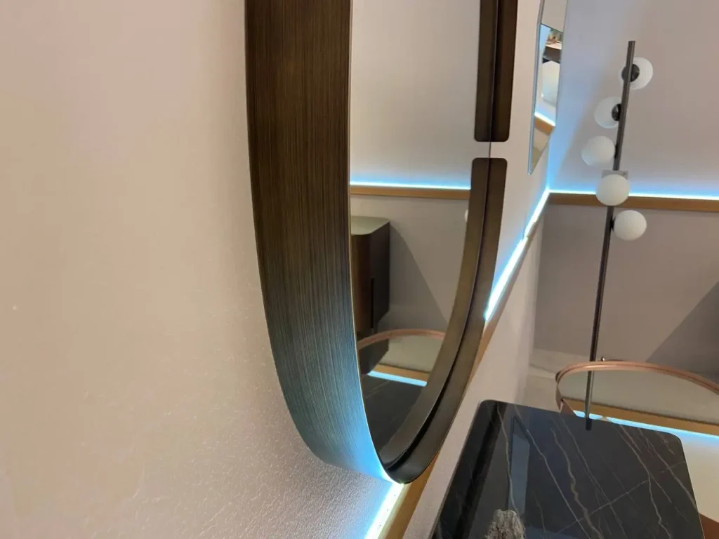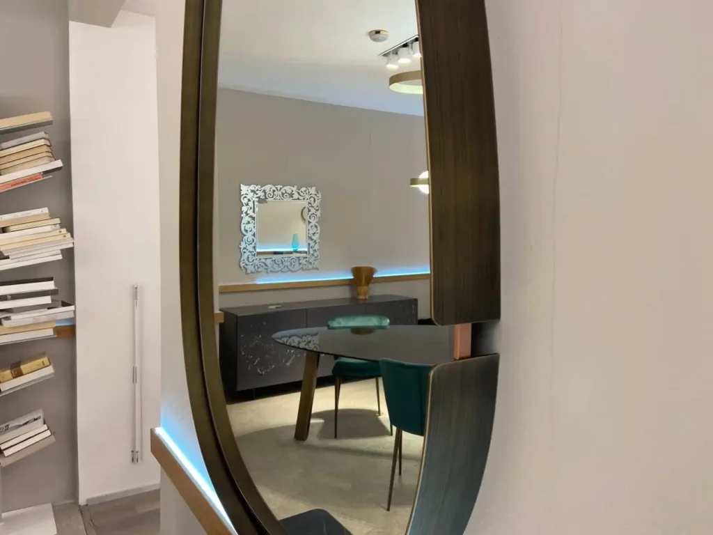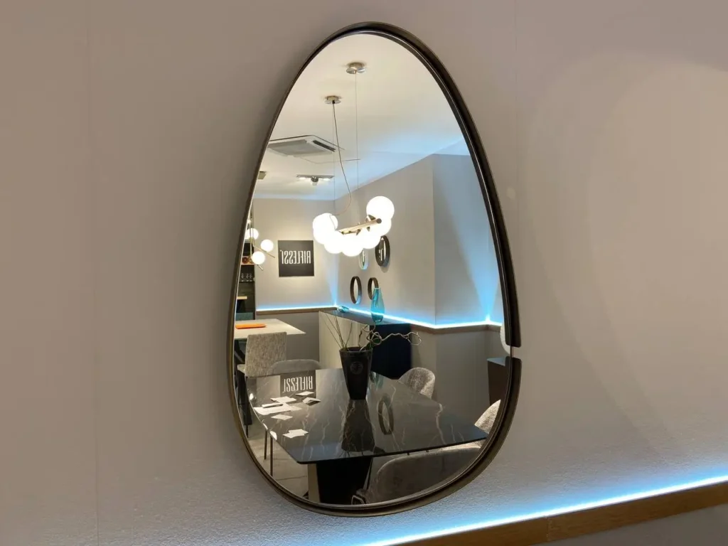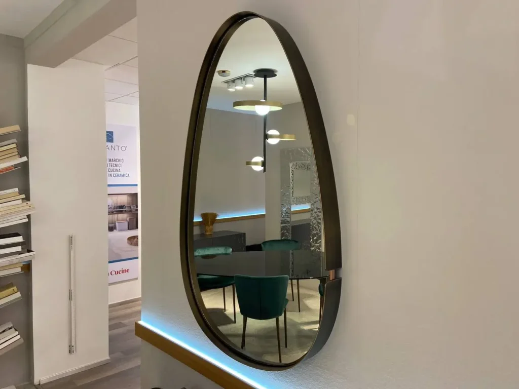 Specchio con cornice in metallo ottone spazzolato, un elemento di design sofisticato e dal fascino senza tempo. La finitura ottone spazzolato dona una calda eleganza che si adatta perfettamente a interni sia moderni che classici. Contatta il nostro team di esperti via email aย info@primearredo.comย o chiamaci per maggiori informazioni!