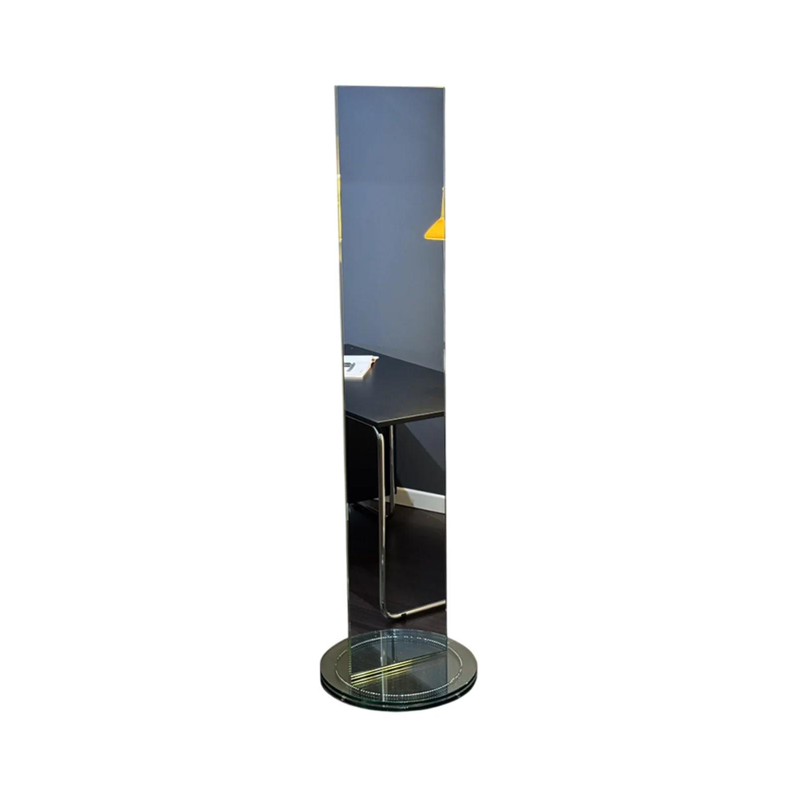 Disegnato da Isao Hosoe, lo specchio Soglia รจ un complemento dโarredo elegante e minimale, ideale per la zona living. Caratterizzato da una doppia facciata e disponibile in vetro specchio, poggia su una base circolare in vetro con sfere in acciaio che ne permettono la rotazione.