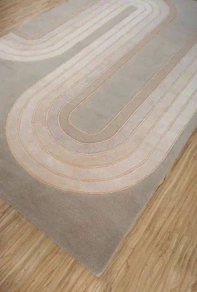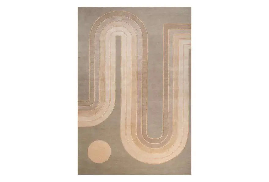 Proposto nella combinazione cromatica tortora scuro e giallo pastello, il tappeto valorizza living, studi e ambienti creativi con un tocco elegante ma espressivo.