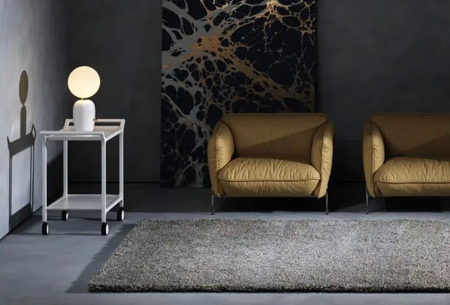 La tonalitร 550 Salmiak, elegante e profonda, dona carattere allo spazio senza risultare invasiva. Grazie a questo equilibrio cromatico, il tappeto si inserisce facilmente in soggiorni, zone pranzo o ambienti di rappresentanza, dialogando con diversi stili dโarredo.