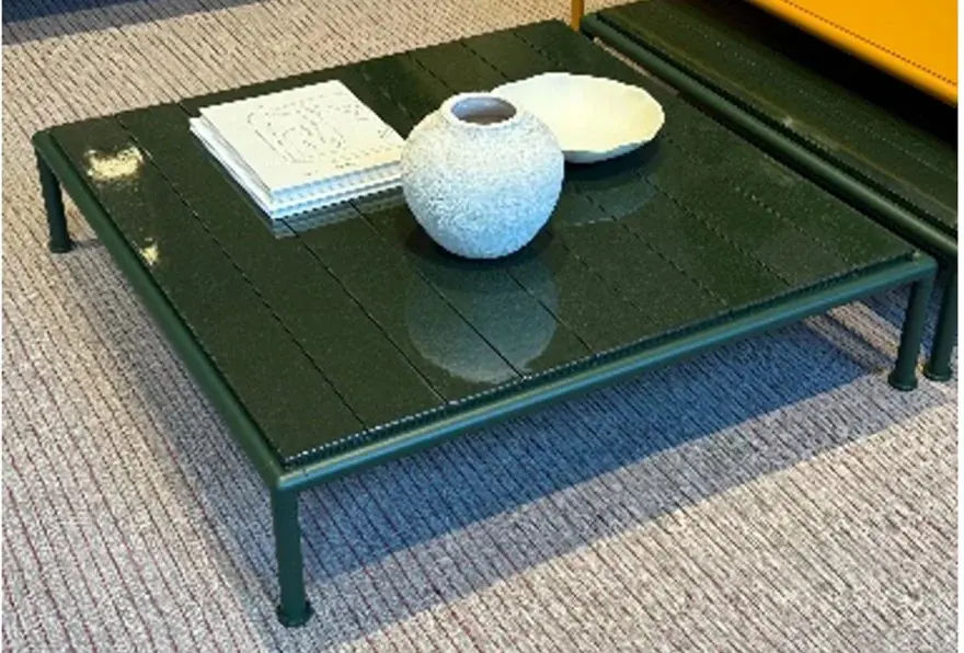 In questa versione quadrata, il Tavolino da giardino Roè presenta una struttura in alluminio verniciato Verde Bottiglia, una finitura elegante e resistente, pensata per durare nel tempo anche all’aperto. Inoltre, il piano in pietra lavica Foresta aggiunge profondità materica e un forte valore estetico, valorizzando l’intera composizione.