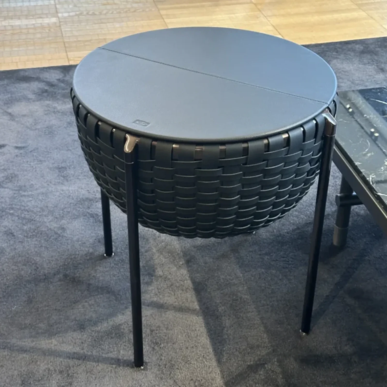 Il coperchio ripiegabile a forma di disco, rivestito in Pelle Frau, offre un piano d'appoggio comodo e consente un facile accesso all'interno del cesto, rendendo questo tavolino pratico per diversi utilizzi. Le fasce intrecciate in cuoio, realizzate con tecniche artigianali pregiate, conferiscono un aspetto sofisticato, mentre la struttura in acciaio con trattamento galvanico in finitura canna di fucile garantisce durabilitร . L'interno รจ rifinito con un trattamento di ceratura trasparente, che assicura maggiore protezione e lunga durata. Cestlavie puรฒ essere utilizzato come tavolino da appoggio o come contenitore per riporre oggetti personali o accessori, offrendo praticitร e versatilitร in un unico pezzo d'arredo.
