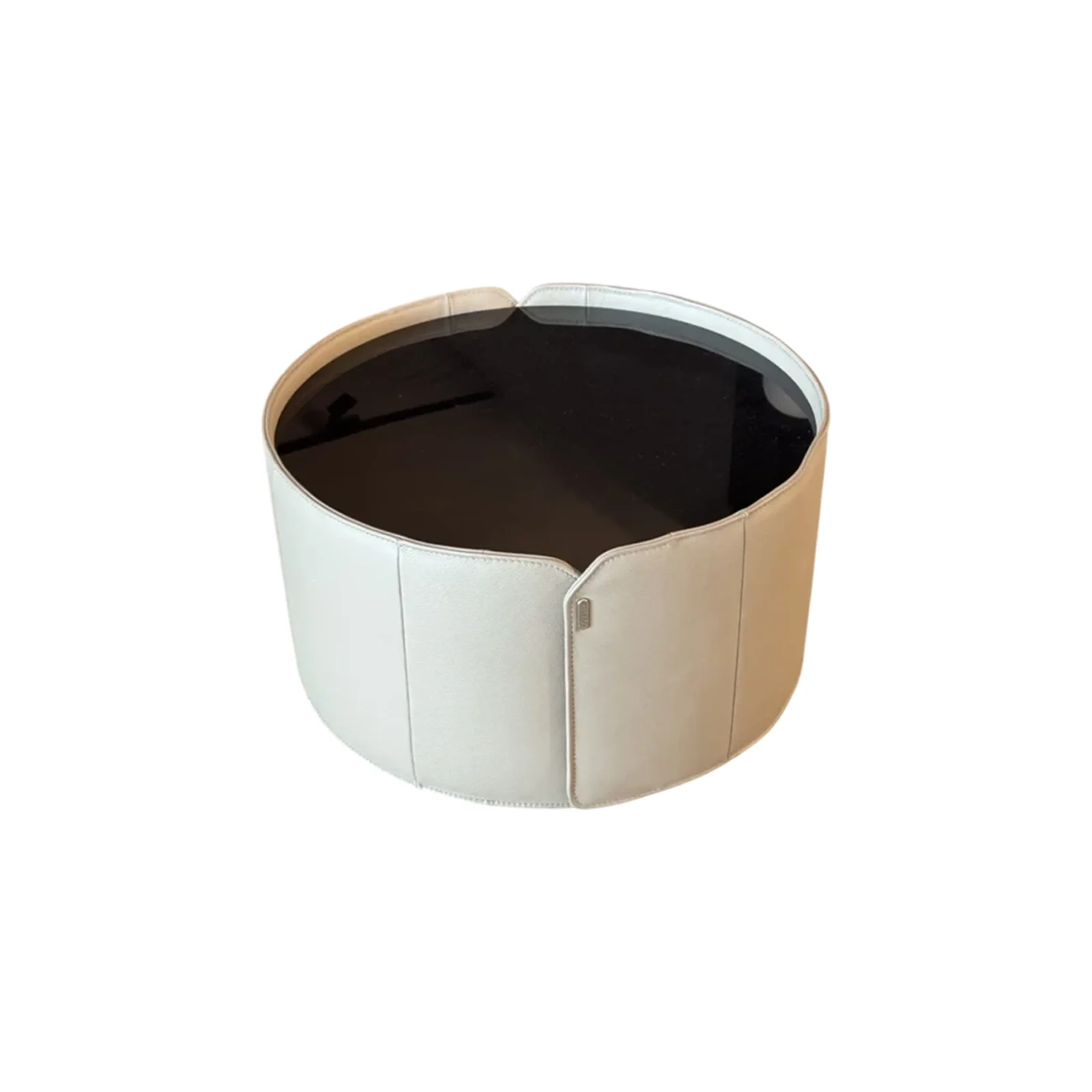 Il Tavolino Collar, progettato da Simon Busse per De Sede, รจ un elegante tavolino che combina alta qualitร e funzionalitร . Con una struttura cilindrica in multistrato rivestita in pelle taupe, questo tavolino richiama lโeleganza del polsino di una camicia da uomo, con l'uso di dettagli distintivi che lo rendono un pezzo unico.
