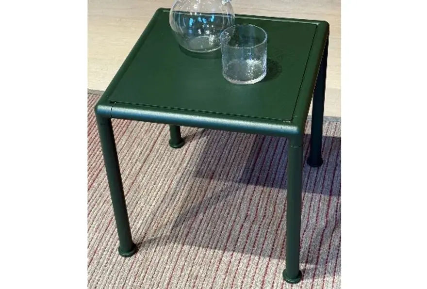 Realizzato in alluminio verniciato, il tavolino garantisce leggerezza, solidità e resistenza agli agenti atmosferici. Queste caratteristiche lo rendono particolarmente indicato anche per terrazze, verande e aree lounge esterne. La finitura in colore Verde Bottiglia aggiunge un accento raffinato e contemporaneo.
