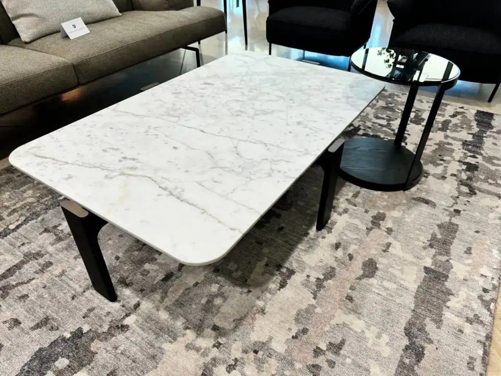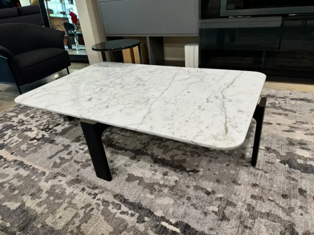 La struttura รจ realizzata in legno massello di frassino, garantendo robustezza e durabilitร nel tempo. Il legno massello conferisce una sensazione di calore e naturalezza, rendendo il tavolino ideale per ambienti accoglienti e raffinati. Il piano รจ disponibile in marmo Calacatta, materiale di pregio, che aggiunge un tocco di classe grazie alle venature naturali del marmo.