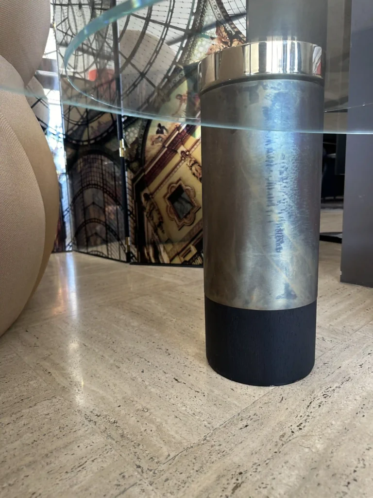 Il tavolino Haumea, disegnato da Massimo Castagna per Gallotti & Radice, รจ una combinazione di materiali di pregio e design stiloso. La base cilindrica in legno laccato offre un contrasto elegante con il piano in cristallo extralight temperato, che dona leggerezza visiva al pezzo. Il tocco finale รจ dato dal piatto superiore in ottone lucido, che aggiunge un accento sofisticato e brillante al tavolino. Ideale per arricchire spazi moderni e di classe, Haumea รจ un complemento dโarredo dal carattere distintivo, perfetto per ambienti living e lounge di gusto contemporaneo.