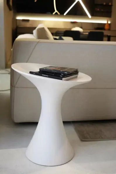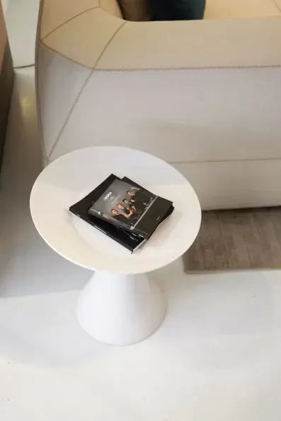Realizzato in Cristalplant®, un materiale resistente e piacevole al tatto, il tavolino Kalè garantisce solidità, durata nel tempo e semplicità di manutenzione. Per questo motivo, risulta adatto sia agli spazi interni sia agli ambienti outdoor, come terrazze, verande o giardini coperti. Inoltre, la finitura bianca contribuisce a valorizzare la luce naturale e ad armonizzarsi con diversi stili d’arredo.