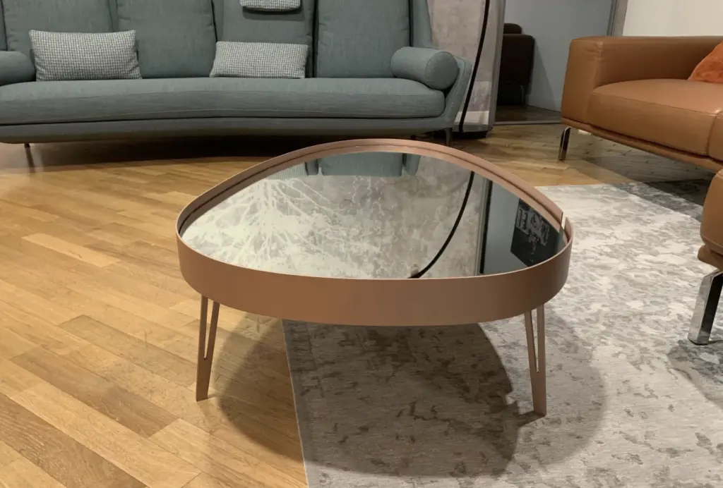 Il tavolino Lumiรจre di Riflessi rappresenta il perfetto equilibrio tra estetica e funzionalitร . Le dimensioni generose e il design ricercato lo rendono un elemento centrale in qualsiasi ambiente, capace di valorizzare lo spazio con la sua presenza elegante. La cornice in metallo verniciato oro rosa non solo garantisce robustezza, ma aggiunge anche un tocco di raffinatezza, mentre il piano a goccia specchiato crea un gioco di riflessi che dona profonditร e luminositร all'ambiente.