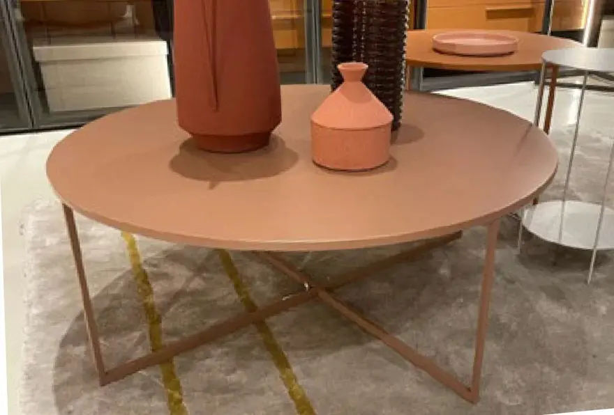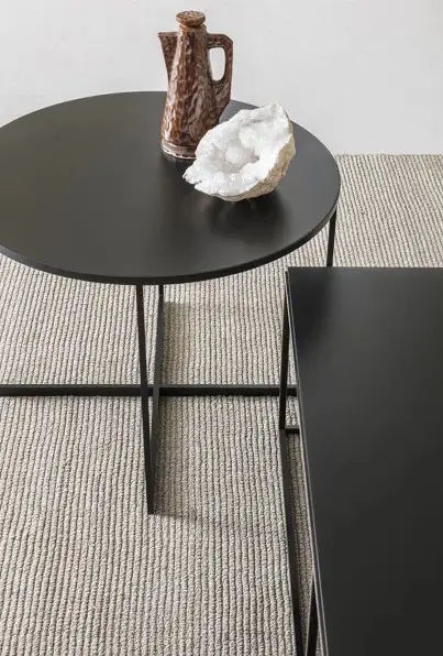A completare la struttura, si aggiunge un piano rotondo, che bilancia le linee decise della base con una forma morbida ed equilibrata. Di conseguenza, il tavolino riesce a inserirsi con naturalezza in ambienti moderni, valorizzando sia spazi minimalisti sia contesti piรน ricercati.