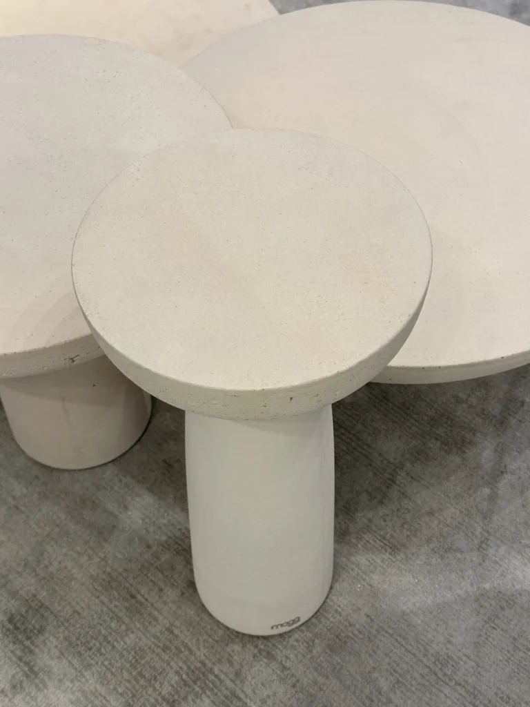 • Materiale: Realizzato in cemento di alta qualitร , disponibile in finitura avorio. La superficie, pur essendo porosa al tatto, รจ trattata con una finitura a cera, che dona un aspetto compatto e uniforme, pur mantenendo una texture naturale.