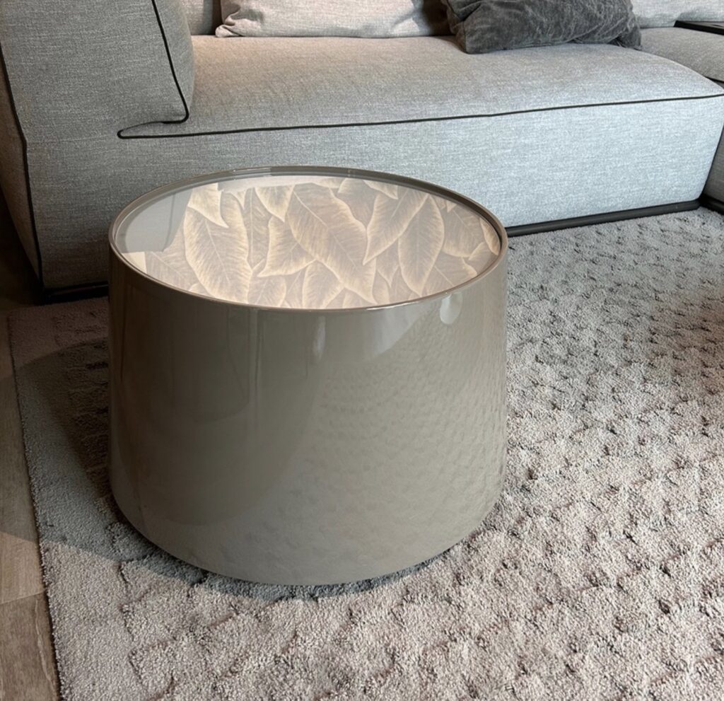 Il Tavolino Planck, disegnato da Piero Lissoni per B&B Italia, fa parte di una famiglia di tavolini rotondi che condividono la forma e i materiali, ma che si distinguono per il loro carattere unico. La struttura del tavolino si espande delicatamente dal piano verso la base, creando un elegante tronco di cono. Il piano in vetro acidato semitrasparente aggiunge un tocco giovane, mentre la possibilitร  di regolare l'illuminazione trasforma il tavolino in un elemento versatile, adatto a creare atmosfere diverse a seconda delle esigenze.