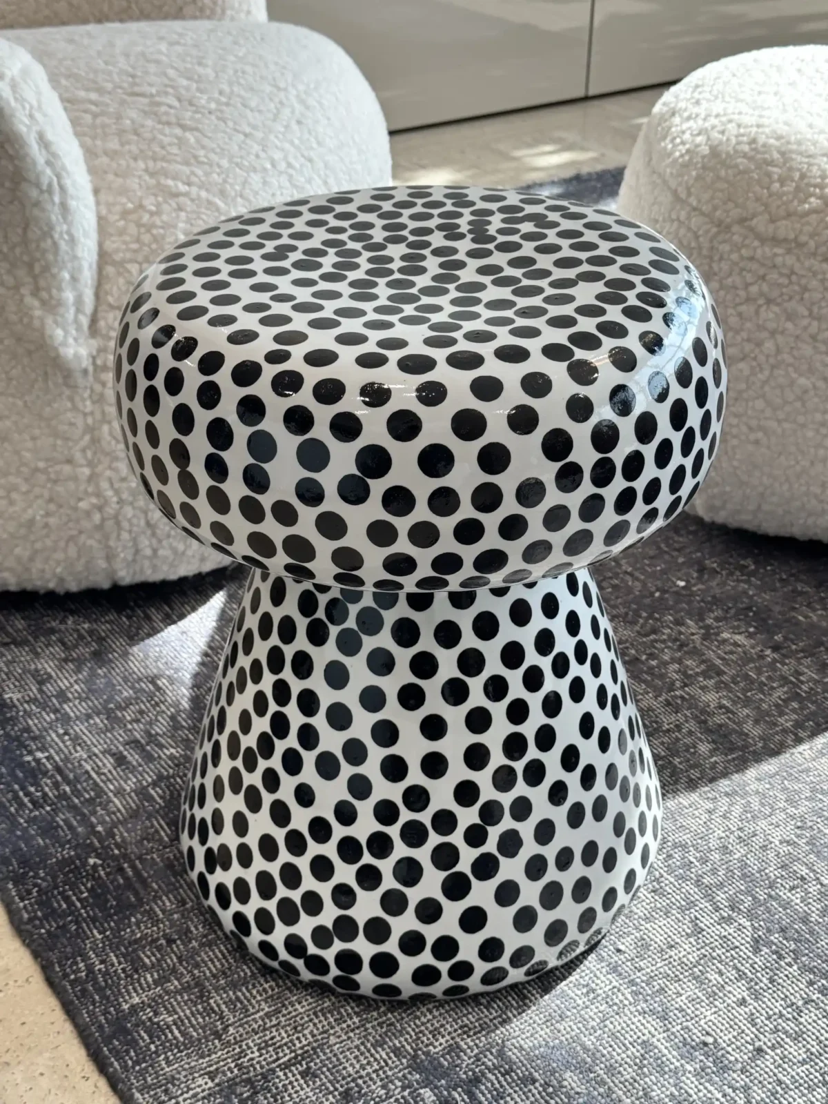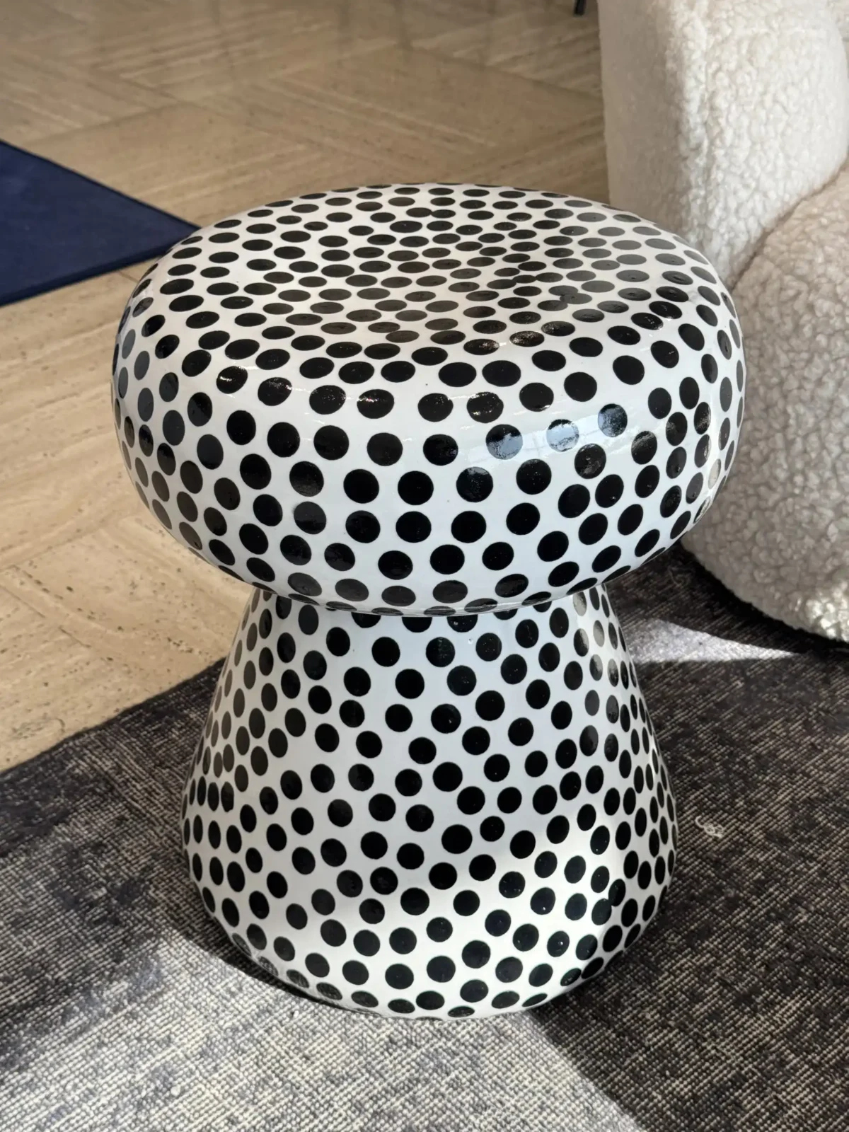 Il Tavolino/Pouff Inout 44 di Gervasoni, progettato da Paola Navone, รจ un perfetto esempio di design elegante e minimalista. Questo complemento dโarredo รจ realizzato in ceramica bianca, con il caratteristico motivo Dot Dot neri, che lo rende non solo funzionale ma anche un elemento decorativo distintivo per qualsiasi spazio.