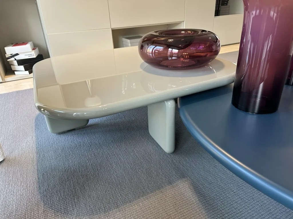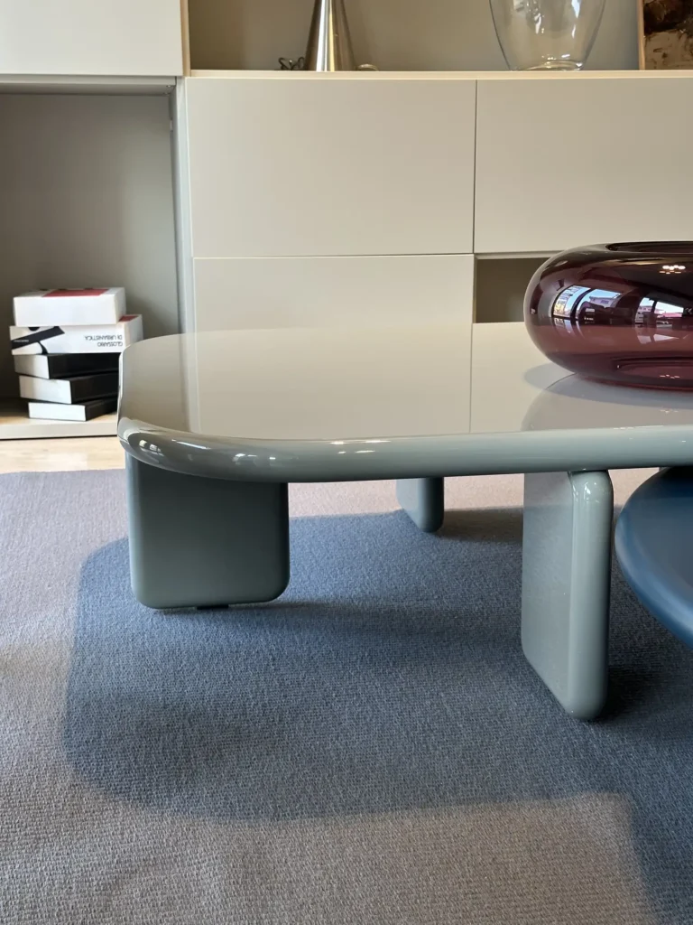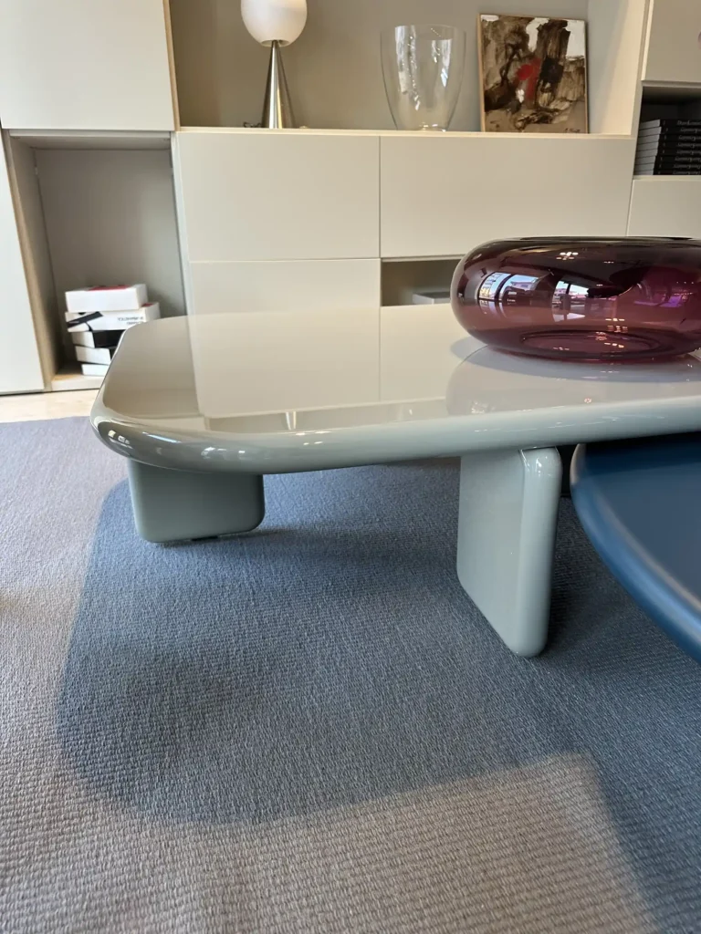• Struttura: Le gambe del tavolino sono realizzate in metallo laccato, e presentano una sezione piatta rettangolare, che si distingue per la sua importanza e per l'angolo morbido e delicato. La lavorazione delle gambe รจ sofisticata, pensata per portare un tocco di eleganza visiva pur mantenendo la funzionalitร .