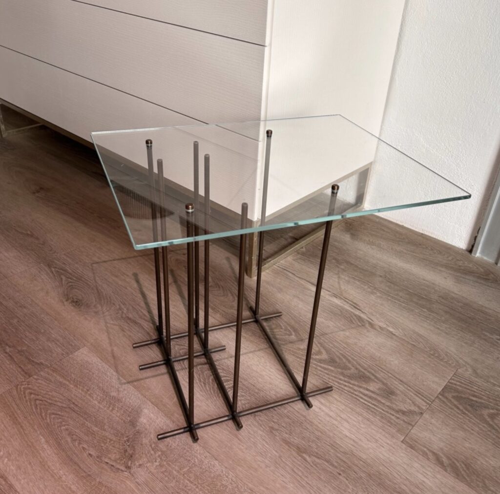 Il tavolino Tetris di Gallotti&Radice, progettato da Massimo Castagna, รจ un complemento d'arredo raffinato e di grande eleganza. La combinazione della struttura in ottone naturalmente macchiato e il piano in vetro trasparente extralight lo rendono un pezzo distintivo e versatile per qualsiasi ambiente moderno.
