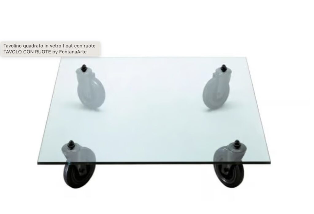 Il Tavolino XL รจ un'elegante soluzione d'arredo con un piano in vetro float molato e ruote industriali in metallo verniciato. Ispirato ai carrelli utilizzati nella sede di Fontana Arte, questo tavolino รจ stato progettato da Gae Aulenti. La sua struttura leggera e solida trasforma un oggetto quotidiano in un pezzo di design moderno, ideale per ambienti contemporanei. Perfetto per aggiungere versatilitร e stile a salotti, sale da pranzo o uffici.