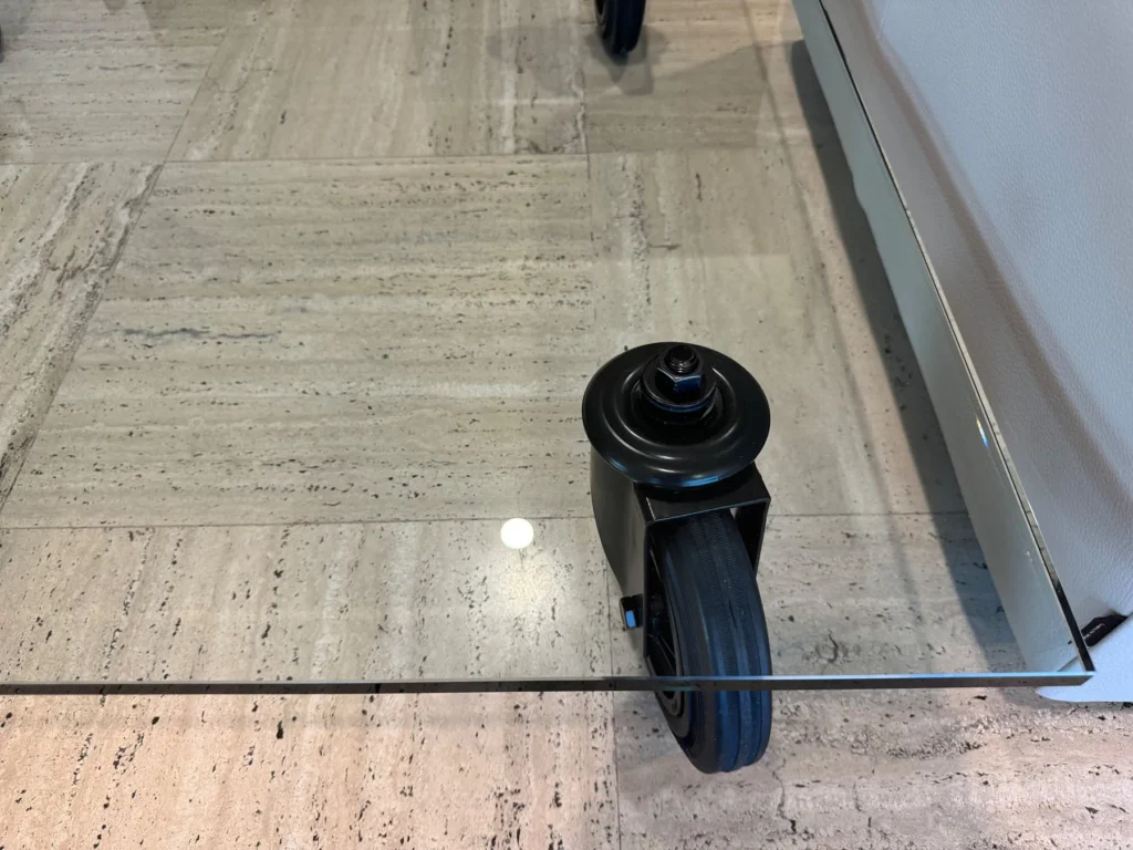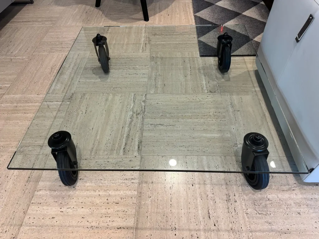 Il Tavolino XL รจ un'elegante soluzione d'arredo con un piano in vetro float molato e ruote industriali in metallo verniciato.... Leggi di piรน