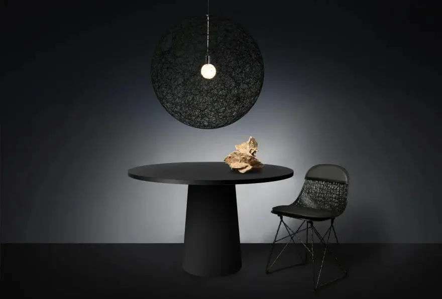 Il piano tondo in HPL nella finitura Black completa la composizione con un’estetica moderna e minimale. Inoltre, la base nella versione standard Black rafforza l’identità grafica del tavolo, rendendolo adatto a contesti residenziali o contract dal carattere contemporaneo.