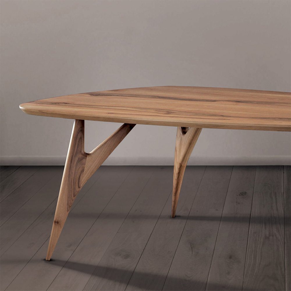 Realizzato interamente a mano in Italia, questo tavolo unisce soliditร e leggerezza visiva grazie alle sue linee organiche e alle gambe affusolate. Inoltre, la finitura naturale del noce dona calore e profonditร allโambiente, creando unโatmosfera accogliente e sofisticata. Allo stesso tempo, il design essenziale e contemporaneo permette di inserirlo facilmente in diversi contesti dโarredo.
