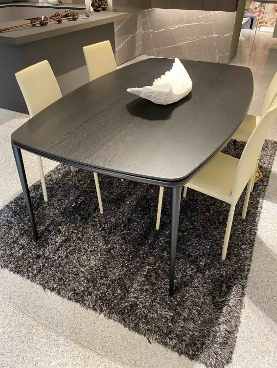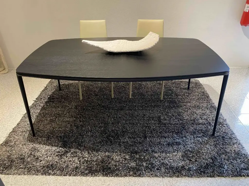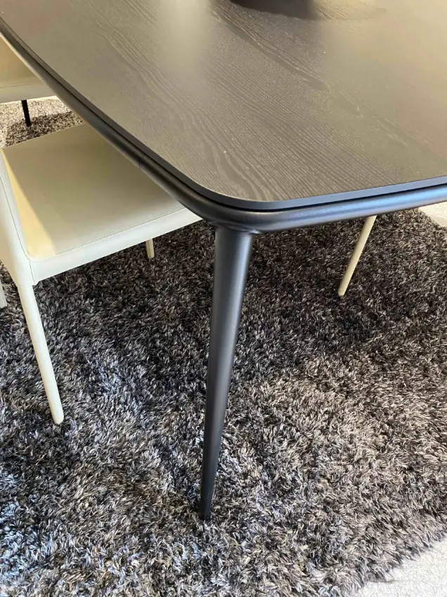 - Base: La base del tavolo รจ composta da 4 gambe in metallo, verniciate di nero, che conferiscono un aspetto elegante e contemporaneo. Il design a gambe singole dona stabilitร e leggerezza, mantenendo l'aspetto minimalista del tavolo.
