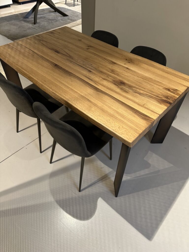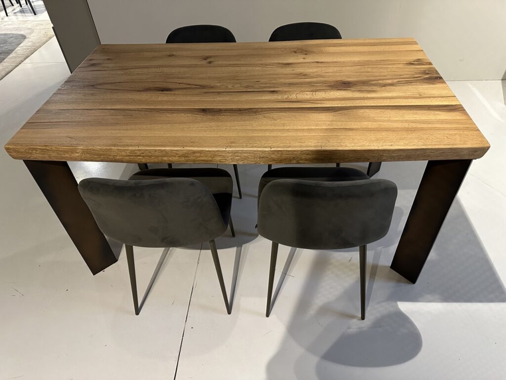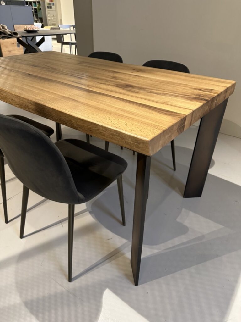 Il tavolo Master di Devina Nais รจ un capolavoro di design contemporaneo, che unisce l'eleganza del legno massello di rovere con la robustezza delle gambe in metallo. Questo tavolo รจ ideale per chi desidera un pezzo d'arredo capace di impreziosire qualsiasi sala da pranzo.