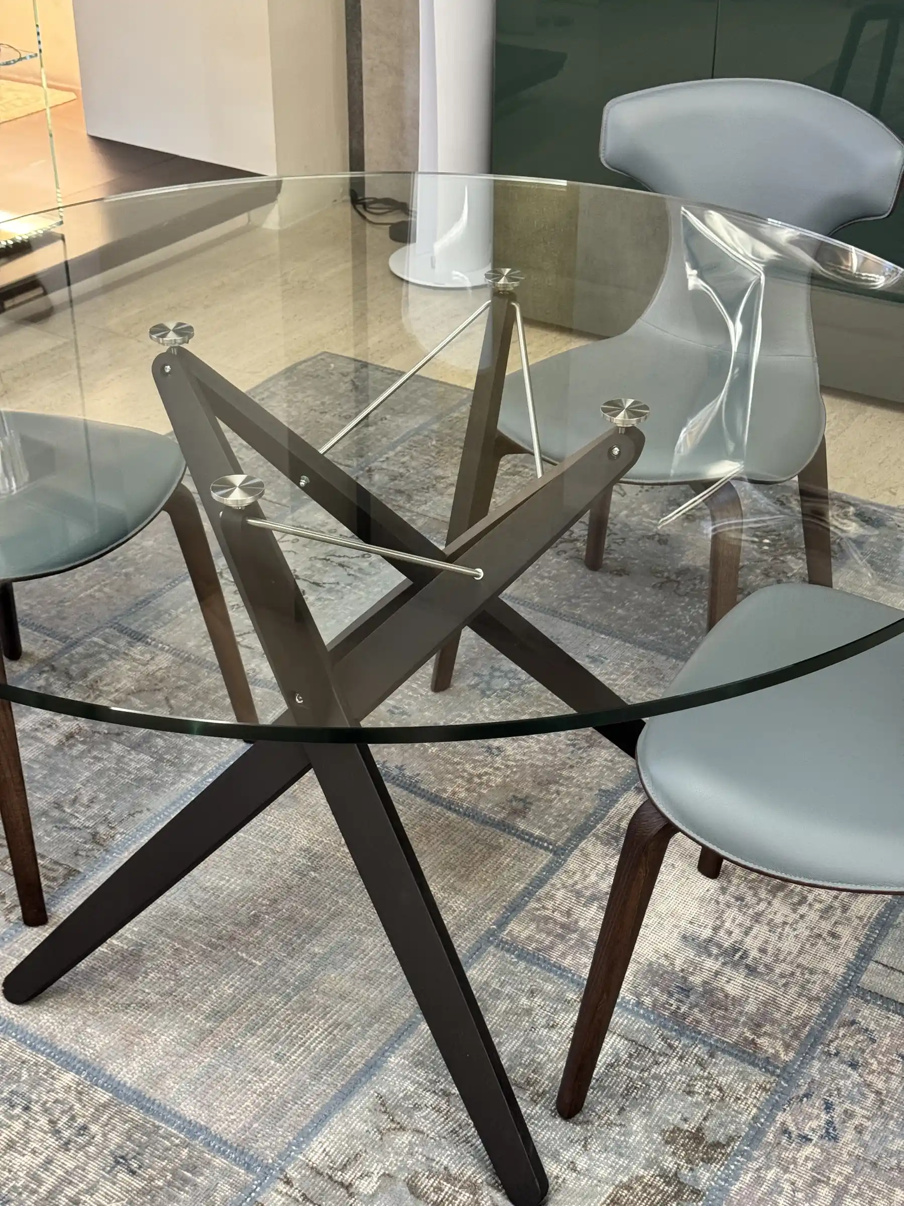 - Design: Il tavolo Orione si distingue per il suo design particolare, che combina legno, tiranti dโacciaio e un piano in cristallo. Lโintreccio di linee sottili crea una composizione che sembra unire sapienza artigianale e innovazione tecnologica.