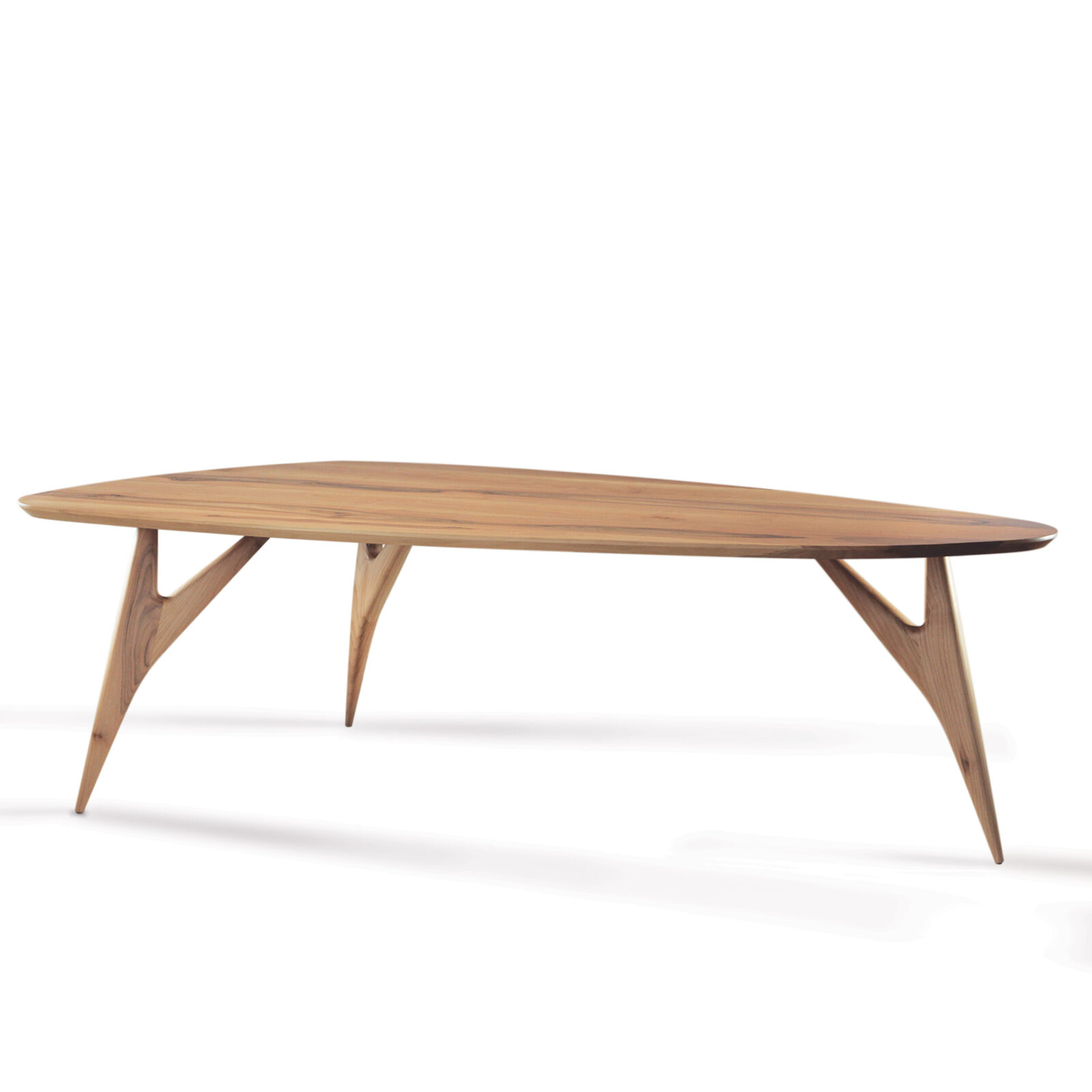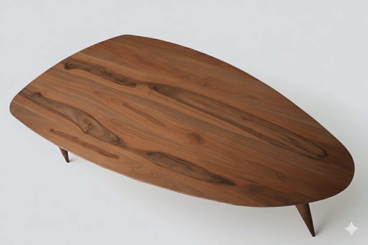 Design: Contemporaneo e scultoreo, con top dalle forme organiche e gambe sottili e fluide, realizzate in massello tornito a mano.